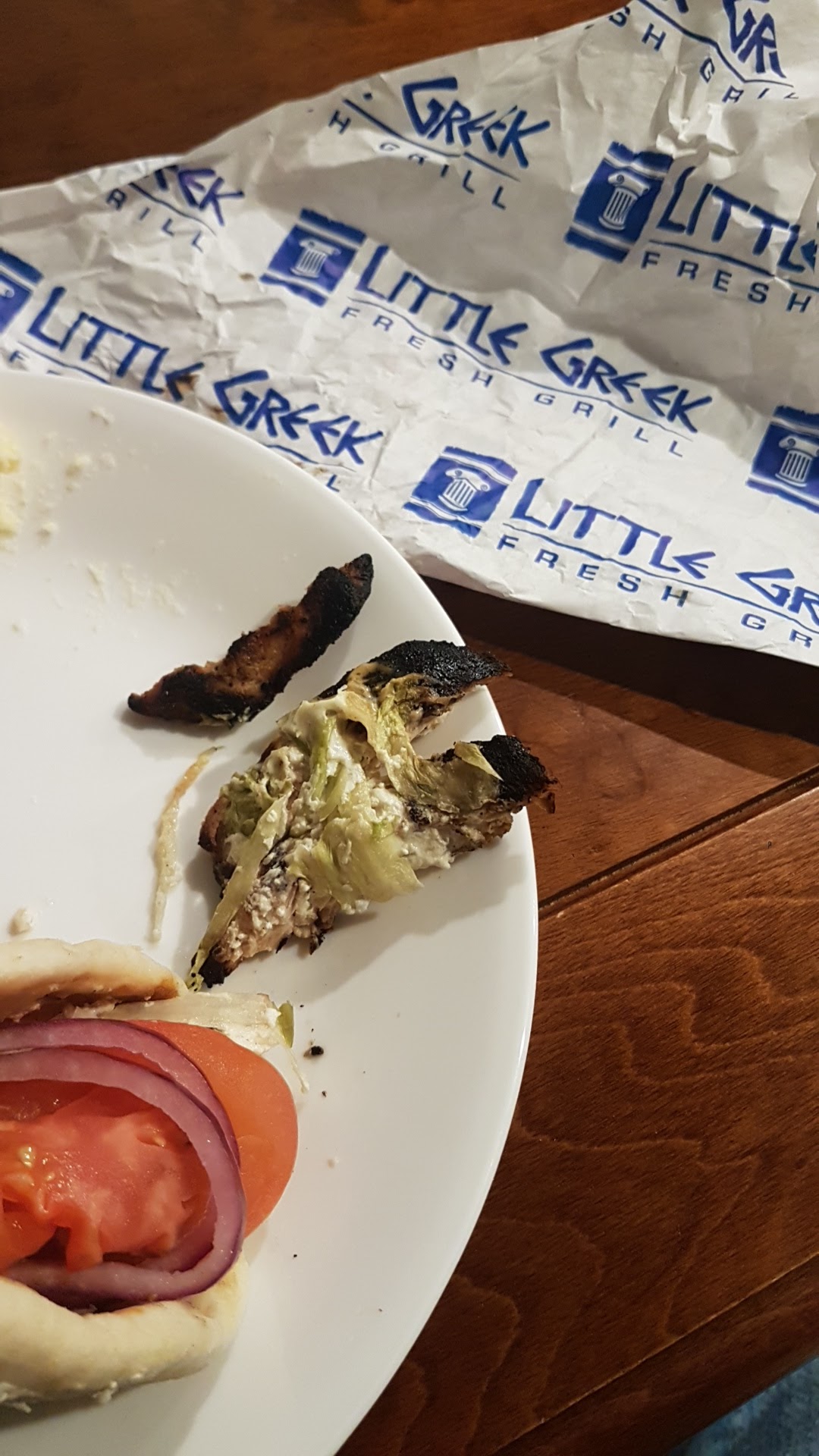 ย ย ย Read moreI came yesterday and bought 4 olympian pita, chicken were all burnt on all 4. I've always loved the food in little greek, but I'm disappointed about the chicken. I would've enjoyed my food if its cooked right not BURNT. Don't burn your meats even if its rush hour.