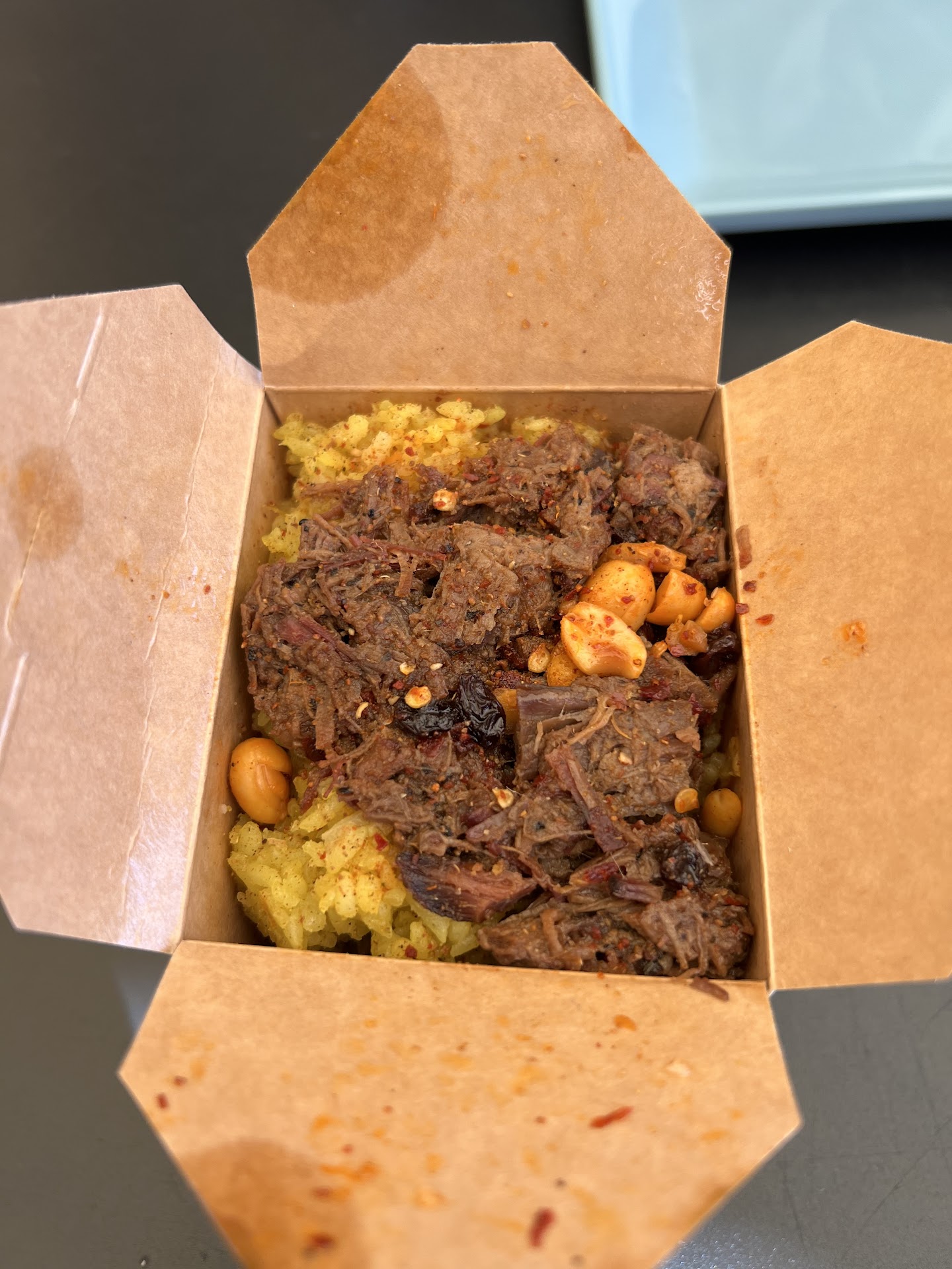 Curried Brisket Rice was pretty good. Hearty dish that you could probably just eat by itself and be happy with. Came inside of a little to go box.