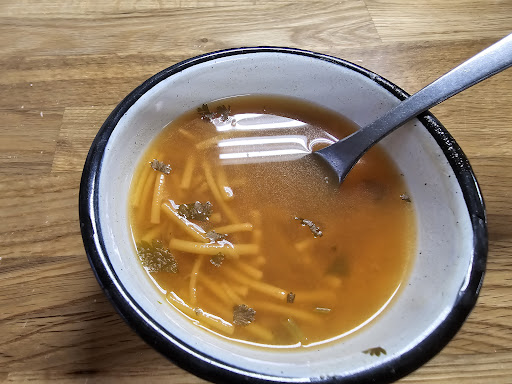 Then came the surprise: a cup of warm, savory noodle soup. Never had it before at a breakfast joint, but it was simple, comforting, and oddly magical—like your abuela knew you had a long day ahead.