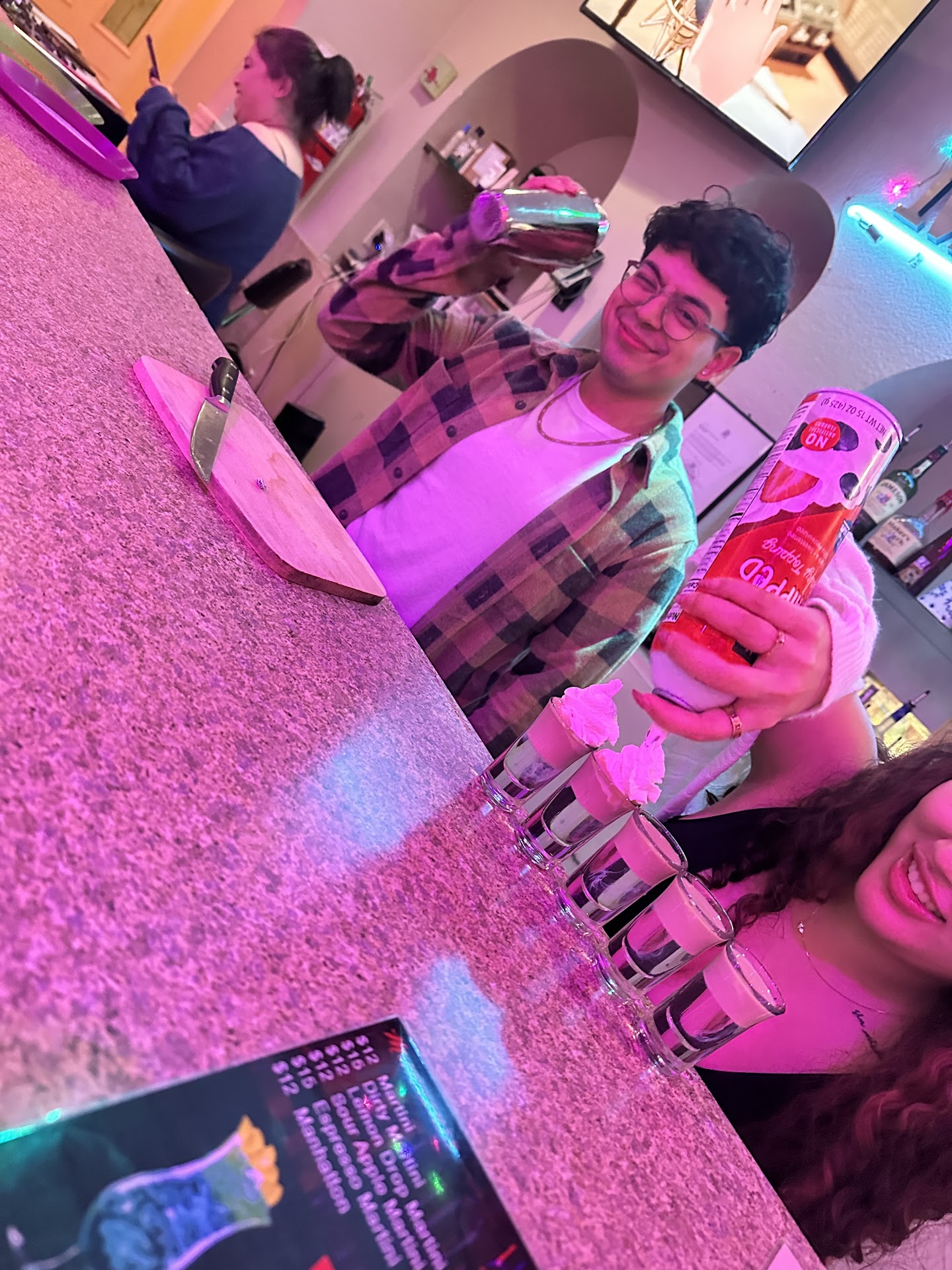 Our hostess/server was Sarah. Super sweet and friendly. The moment we walked in she greeted us and although we were late we were still able to get our room. We had over 15 people and the room fit all of us with plenty of space to dance around and not feel crowded. Brandon assisted her all throughout the night as well. Both Sarah and Brandon kept our night running smoothly. They always checked on us and explained to us in full details on how their system worked. We were there for about 3 hours and no matter what we needed they were able to provide us with what we needed and always stay positive and friendly. At the bar was Millie we didn’t have much interaction with her but she was super kind and would help us anytime one of us came up to the bar.