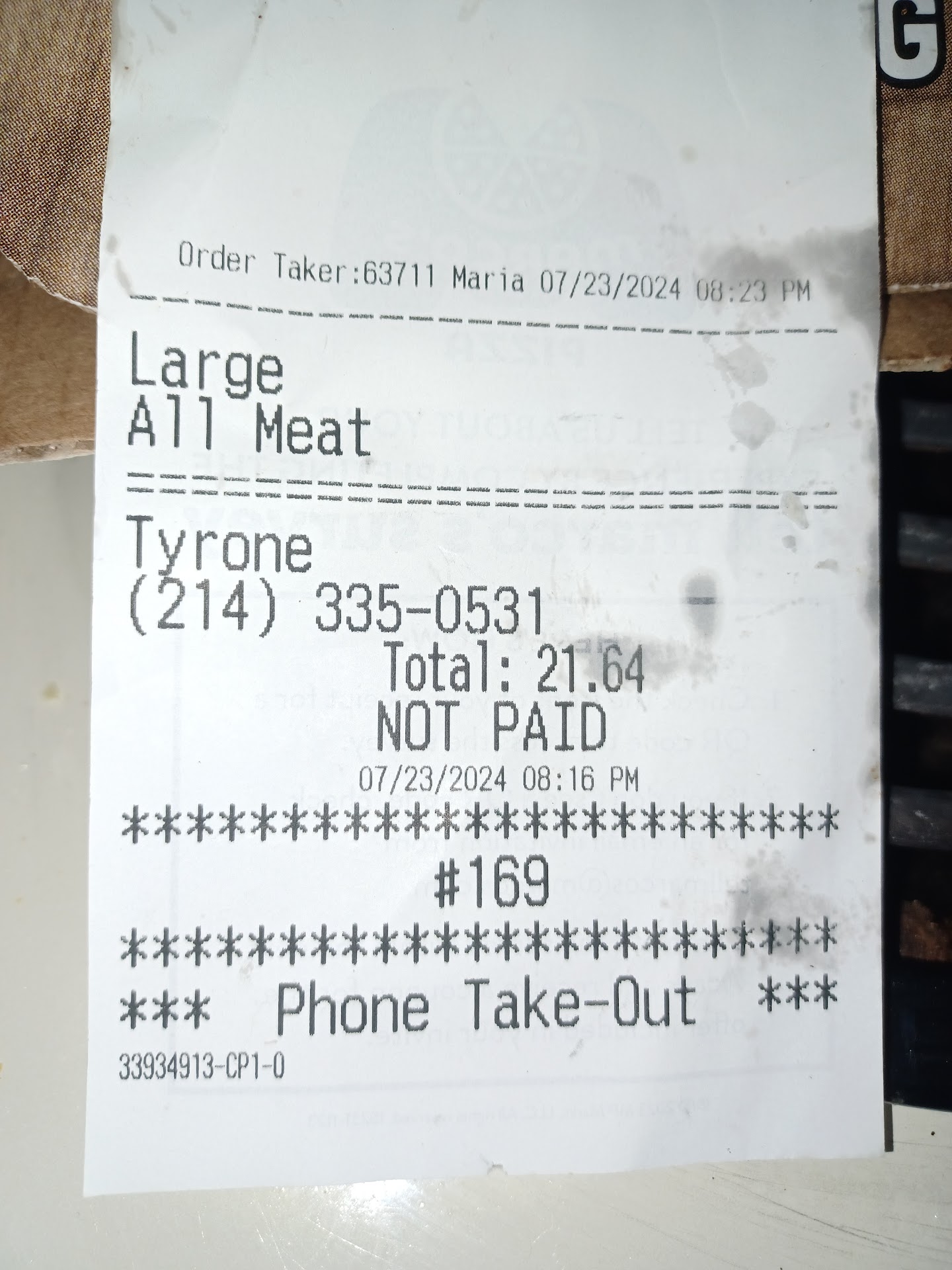 Iāve been a Marcoās customer at this location for about a year and Iāve never really had an issue until today, long story short I did an online order had my husband go pick it up it takes about 20mins since we donāt live in the area anymore so when he gets there the order is still being prepared no big deal I like fresh food finally the order is ready, he gets home and weāre missing a large pizza so I call to let them know, the phone was passed around 3x until finally I get a āmanagerā who said to come back up there the pizza will be free, Iām like maāam the pizza was paid for I spent $75 it was suppose to be with the order my husband picked up, sheās like o⦠well just come get it weāll make it fresh at this point I donāt want to drive another 20mins there and another 20mins back home for a missing pizza so I ask for a refund she said she canāt do it but if I come back sheāll give cinnasticks Iām like you can do better than that nonetheless my husband goes back just to get a pizza that was literally threw together due to their mistake and on top of that overlooking the requested pizza description from my original order so this location lost a customer Iāll try the one closer to me in Garland before making a decision to cut ties...
