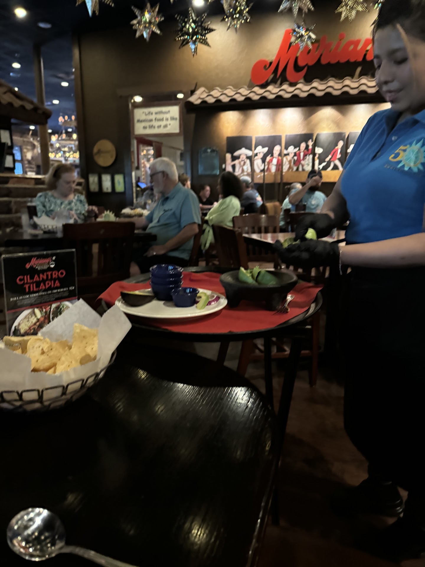 Delicious food!! This was my first time at this restaurant. It did not disappoint. I grew up in the restaurant business so of course Iām noticing everything, cleanliness, decor etc. My friend and I decided to have our lunch/dinner meeting here and the minute I saw Patricia our fantastic waitress preparing the table side guacamole I knew we were in for a yummy satisfying treat and I was right !!! The front end service was very good, we had to wait 15 minutes which was fine. We were seated by a gracious hostess to our roomy booth. The booth was not tight and small a good amount of room so comfortable I was ! My friend ordered the Margarita Marianoš looked so delicious and it looked like the photos on-line. I always appreciate when the online photos mimic the exact drink or foods you receive so kudos there ! I got the Mango Margaritas with a mango garnish..fresh and soothing. Patricia made sure to explain some of the various dishes etc, I listened and started with beef nachos, we ordered the table side guacamole and I added the cup of Mariano quesoā¦our appetizers came I noticed how they presented it with care and not thrown or slopped on with things floating off the plate edge, it was perfection and even better, tasted fresh and with Tex mex flavor I know and love. I knew our entrees would not disappoint. We both ended up getting beef enchiladas, I choose the Chile topping my friend choose the white cream topping, oh my !! The food arrived after we ate our appetizers. Patricia thank you for not shoving all the food together we had time to eat the appetizer while waiting for the entrees. Patricia clearly is a seasoned waitress with great service skills. The food was delicious , hot, flavorful and just yummy š!!!! I decided to take half home because I could not pass up the hot apple pie extravaganza dessert. It comes on a heated platform, Patricia drizzled something over the apple pie so it warms the homemade apple pie but the sizzling theatrics is pretty awesome, then they top it with not just any old vanilla ice cream I could tell it was the real deal, āVanilla Bean Ice Creamā..so itās fair to say I ate way more than I should have but I will say that the full tummy was well worth it. I enjoyed Marianoās . I most definitely will be back to try the famous fajitas and drinks of course. Patricia thank you for your pleasant service and careā¦.it was enjoyable and it gives me great pleasure to write this review. As I said I come from the restaurant industry my father owned a busy family restaurant while I growing up so I appreciate my experience at...