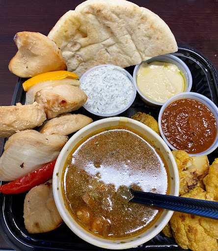 Just ate there with my wife. She had the pita with beef and side of tabouli. I had a plate with chicken shawarma, Israeli salad, and fries. It came with hummus and I chose lemon garlic sauce. We both had a cup of the harissa chicken soup. You get a really nice pita half with the plate, and with each soup order.
