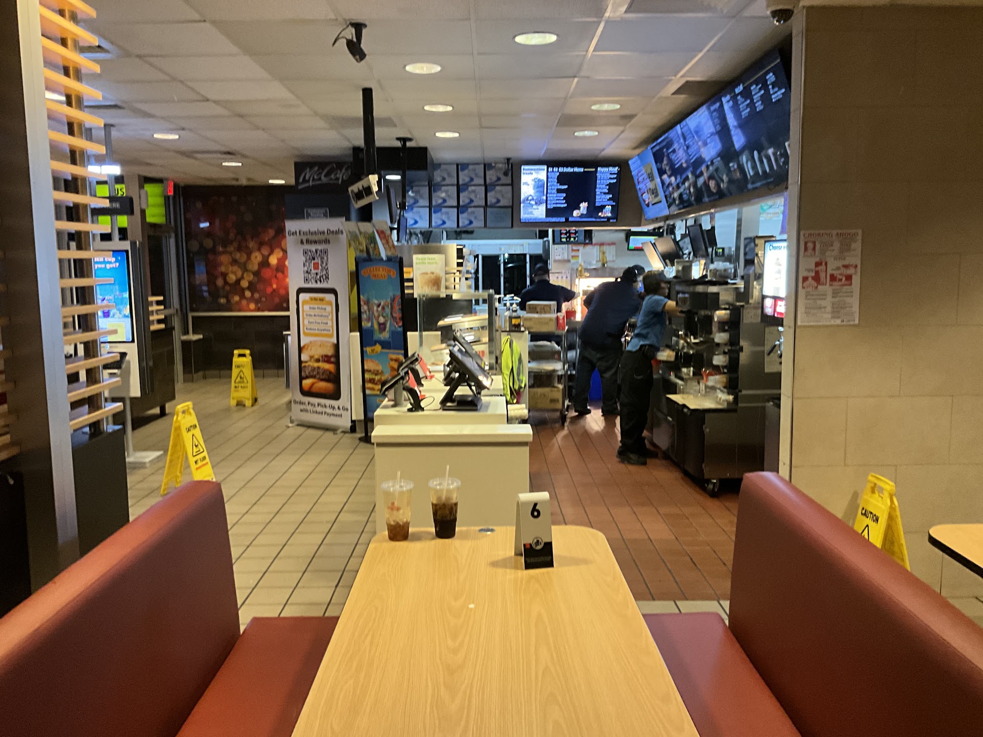 Went here after getting back from a news year's party in Arlington. It looked like they only had one person working on new year's. Our food was so messed up I couldn't even eat it. We were supposed to get two McChickens and a small fry. Instead we recieved 1 spicy McChicken, 1 McDouble, and a small fry. All the food was old, crusty, and cold. We went here because Taco Bell and Jack in the Box had a line that was wrapped around. Now I know why the McDonald's line was so little. đ¤Śââď¸ Even with it being a smaller line it still took at least 30 minutes to get through that line. I honestly think we should've just went to Jack. I regret coming here and I'll be bringing their sorry excuse of food back today. I want my money back! I won't be coming back here unless I know there's managers working and it's during the day. Not loving it! Oh and side note the people in front of us had a girl hanging out the...