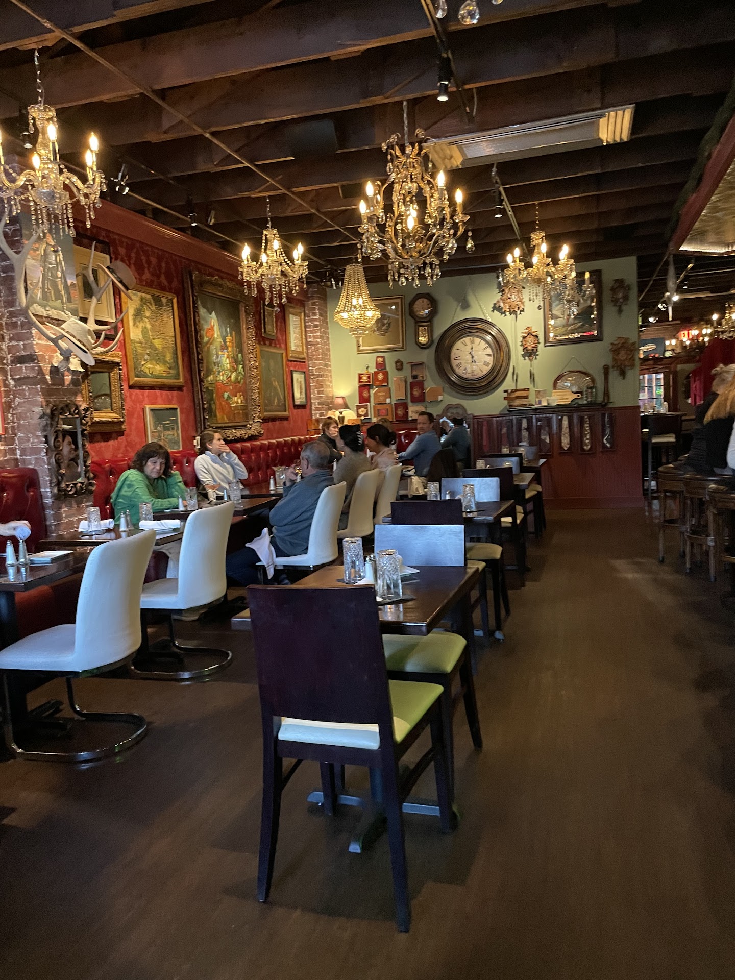 Read moreWhat an unexpected delight! From the front this place looks like a small little dive. But once you go through the door you are treated to an eclectic upscale but comfortable experience. I immediately smiled! The multiple chandeliers caught my eye and made me chuckle. They are all mismatched and fabulous! The restaurant is long and skinny. Like the old timey places in New York and Chicago. Dark and moody on the inside and bright and cheery on the patio. We sat on the patio and had a table by the stockroom/frig. There was a employee traffic going in and out past us the whole time- to get to their supplies. The patio is charming and has lots of old timey posters and art. It feels cozy & relaxing. Though the place has an upscale feel to it, including the menu, it is not stuffy at all. We had on jeans and there were several people in shorts and sun dresses. You can also enter from the back patio and walk up to the front to check in if parking is full in the front. Back parking is plentiful. The playlist was really fun and we enjoyed "naming that tune". The wait staff was perfection. Happy employees, attentive but not too much so. They work well together! Cocktails were scrumptious. They also sell cigars (humidor) and have afterhours smoking on the patio. The bar inside has an old world feel to it. My husband had the shrimp and grits and he loved it. He said it was the best he had ever eaten. We shared a side of grilled mushrooms which were so so good!. I had the rotinni and seafood. It was beautifully presented and plentiful but had no flavor. Both of us commented on how dry & tough the shrimp were in our dishes. I would not get this dish again. I had creme brulee which could not have been better and my husband had the cake and strawberries, which he said was decadent. We were glad to try out McCraes and plan on...