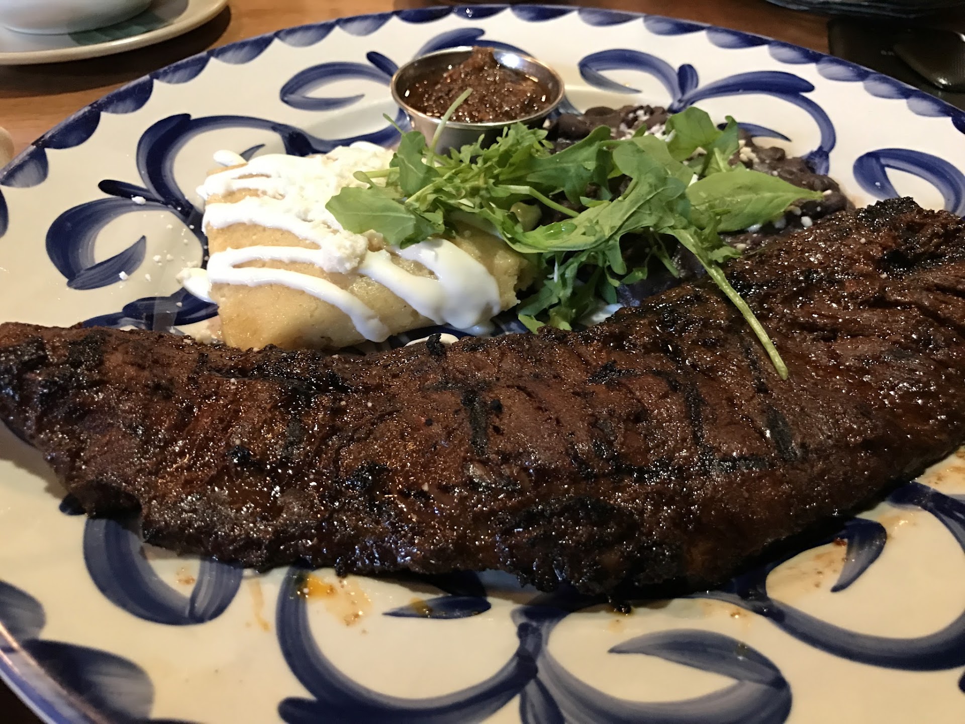 I then got the Carne Asada and my friend got the Brisket Enchiladas. Both plates were aesthetically pleasing. My carne asada (steak) was tender and flavorful. I really enjoyed it. Plus the steak looked like a crescent moon which was something you dont see everyday. My friend enjoyed her Brisket Enchiladas very much too.