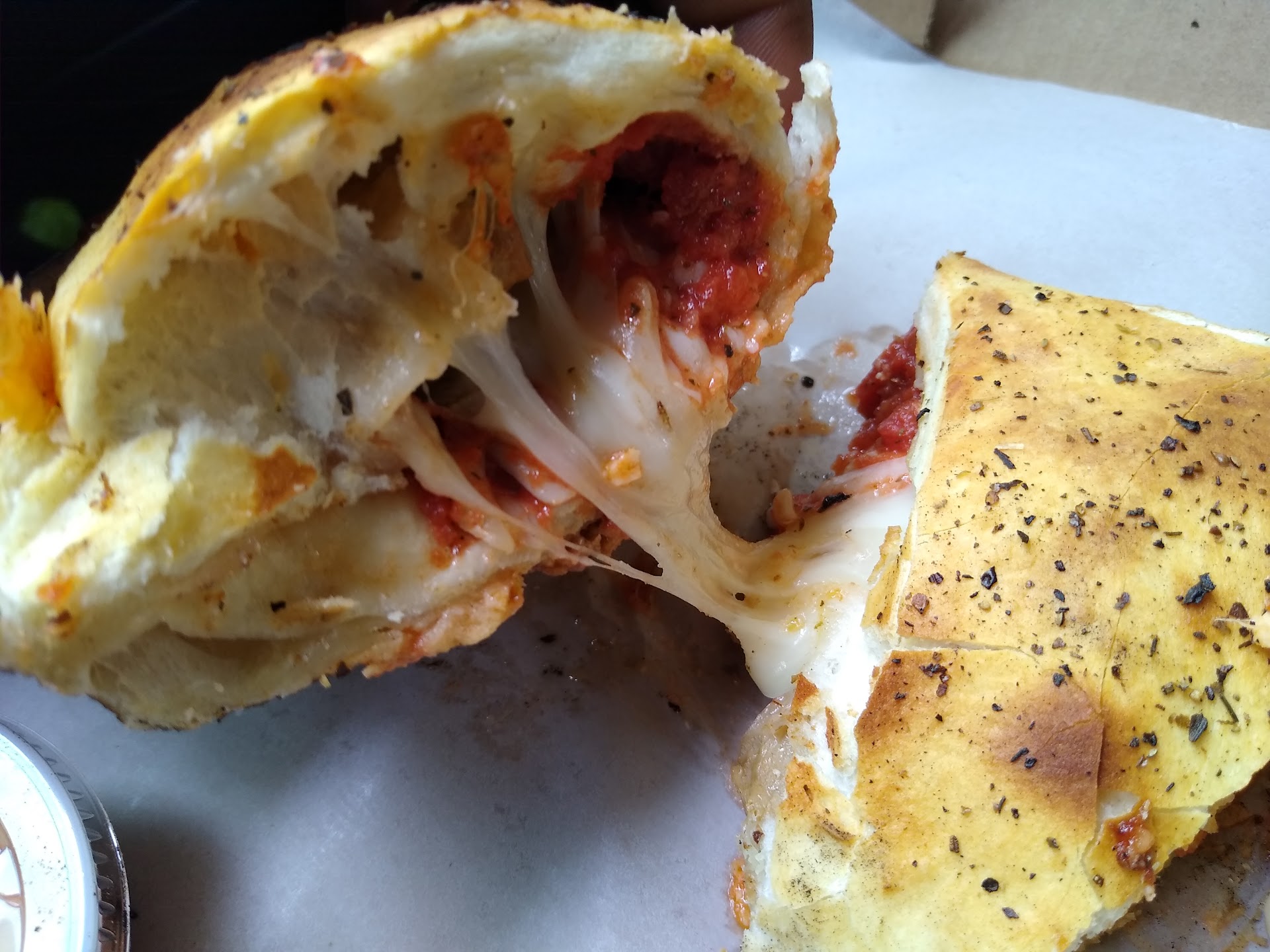 Literally just finished this beautifully crafted calzone from Midcities. Completely vegan, completely plant-based. The bread was so light and airy, the spicy sauce they offer is immaculate for those looking for an extra kick, and the cheese didn't leave me feeling heavy and bloated. I mean, look at this cross section!! I was showed by the customer service as well. Extremely friendly guy, who made sure everything was to my liking every step of the way. Even asked how I wanted my calzone cut. You wouldn't know it by looking on the outside but, this place definitely deserves way more business than it is getting. From quality to customer service, I'd give 10 stars if I could. Fantastic job, Midcities Pizza! I'll definitely be back for...