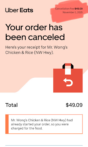 Read moreThese people are crooks. I mistakenly placed my order at the wrong Mr. Wongs location. I realized this immediately and in less than 10 seconds I canceled my order (restaurants and drivers cancel orders or mess up all the time didn’t think it would be a huge issue). I knew for a fact my order hadn’t been accepted yet because it was still “processing”. They charged me in full for my order because they “already started my order” (in 10 seconds even though it was still processing). Once I saw they wouldn’t allow a cancellation, I said I’d make the drive to go and pick it up. Then they refused to let me go pick up the food that I PAID FOR. They literally charged me $50 for food that they refused to let me pick up.. Even uber eats said they had never heard of...