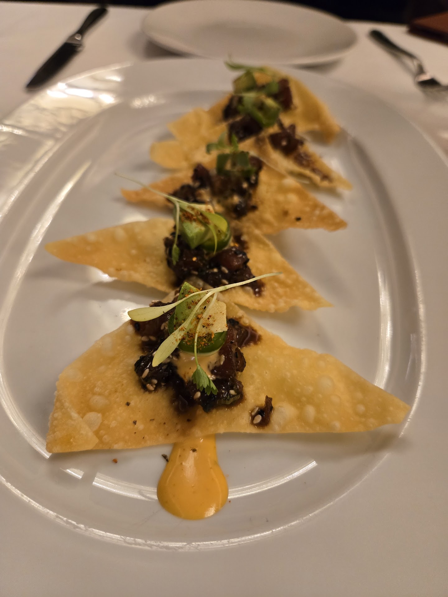 I will credit the restaurant with recognizing that there was an issue with the original waiter and changing course. However, the long wait times were still an issue and the lack of formal acknowledgement really bothered me. Based on pricing and atmosphere, it seems like they are trying to present themselves as high end dining, but the service is anything but that. I'm not sure if it was an off night but I would be hard pressed to ever return unless the meal was fully comped. Proceed with caution...