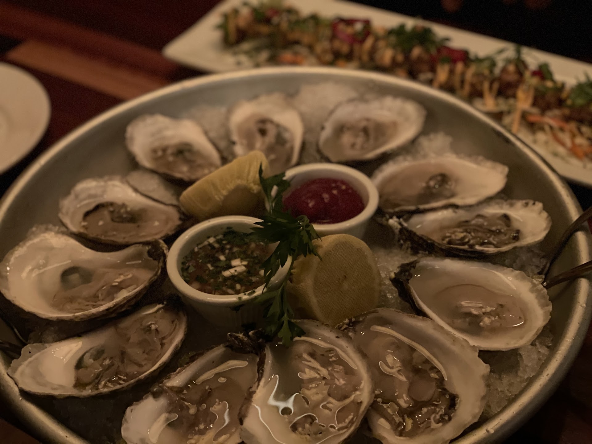 Read moreStumbled upon this place on accident, as my girlfriend and I were waiting for our Uber to dinner. Upon arrival, we cancelled the Uber and decided to have a drink and some oysters at the bar. After talking to the bartender about the menu, we decided to forego our reservation at Carbone Dallas and to stay and eat there. I ordered the nightly special braised beef bolognese with a promise of hand made noodles and My girlfriend ordered the filet. Issues arose once our food was delivered. I was given a bowl of Alfredo, which was far from what I ordered. The bartender immediately noticed and went to the manager to ask why. He was told the kitchen had run out of the nightly special and that they had decided to give me “hand pulled” noodles with alfredo! Instead of relaying the information that they had run out of the dish and letting me order another dish, this was their remedy. The manager came over and said “we apologize don’t worry sir we’re taking the Alfredo off” and walked away. I DID NOT want Alfredo of course that should not be on the bill! I ordered a California red for Christ’s sake why would I get that with an Alfredo? That glass of nickel and nickel cab sav was left pretty much full! We finally got the bartenders attention and asked if I could order another entree. I did and it came out far after my girlfriend was done with her meal. Upon receiving the bill, we noticed nothing else had been taken off for this occurrence and obvious mistake. We were extremely disappointed with the management of this, as we were here from out of town, for a birthday celebration, and talked into staying here. We weren’t looking for something for free, we have plenty of money, as we were headed to Carbone!! It’s the principle of the matter that clearly management did not care one bit about what happened or how our experience was. The bartender was great and I said something to the manager solely because of his reaction of helplessness as he received no help remedying this situation. Safe to say we will NOT return as the manager is incapable of...