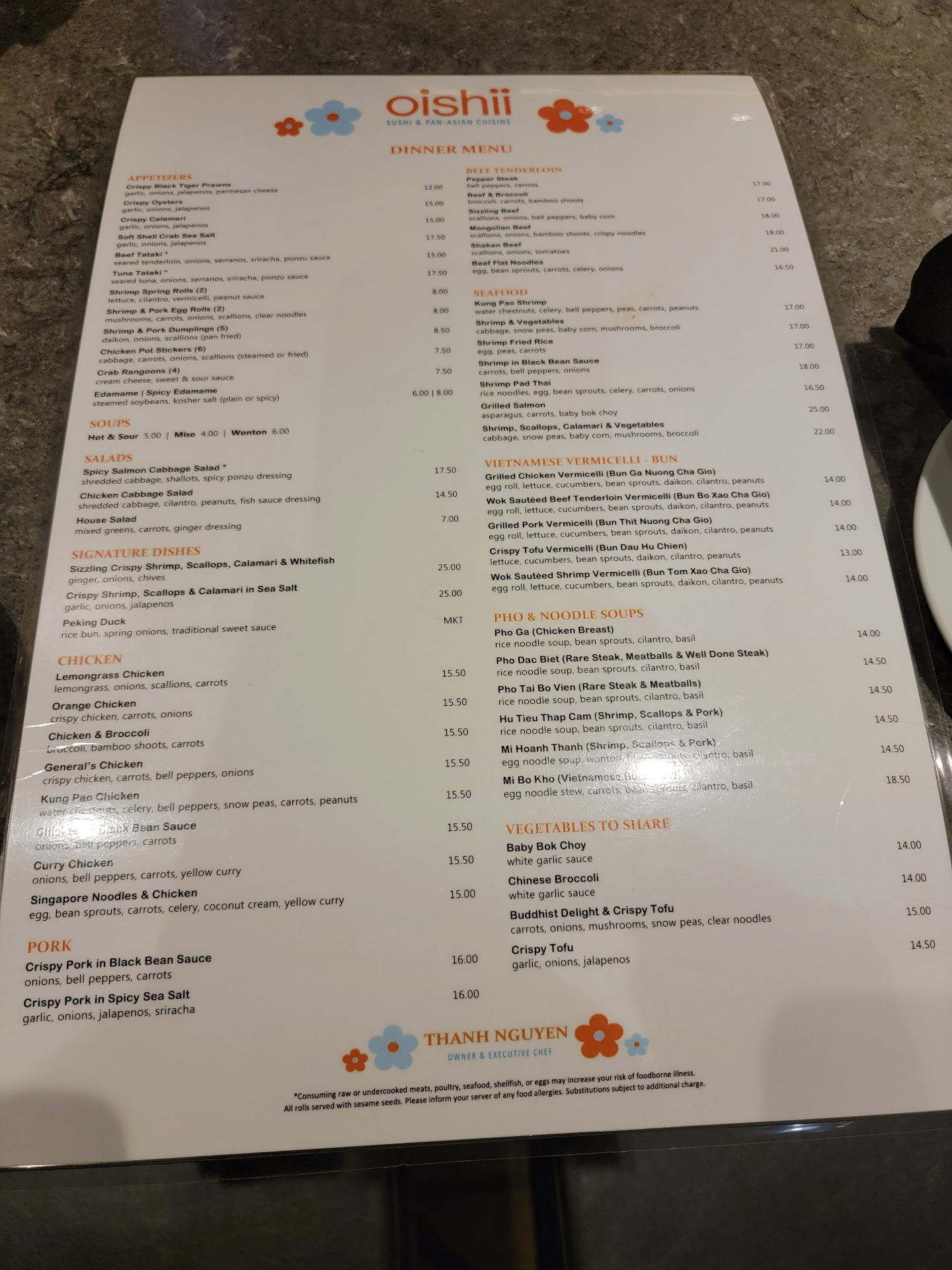 The menu at Oiishi is impressively diverse, featuring an array of sushi, sashimi, and creative rolls that cater to both adventurous eaters and those who prefer classic options. Each dish showcases high-quality ingredients, with an emphasis on freshness that is immediately evident.