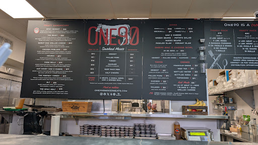 ย ย ย Read moreFirst, the food here is really good, and One90 is very close to our house. My husband and I regularly order their brisket tacos and chicken tacos (as I am gluten-free, and they serve them on corn tortillas). We order online and ask for extra cheese on the brisket tacos EVERY time, and they never actually put extra cheese. We also ask for barbeque sauce on the side EVERY time (as there is no barbeque sauce on the tacos--which makes sense for soggy-reasons). They NEVER include barbeque in our bag, and when we ask for barbeque sauce they say they have to charge an extra dollar for barbeque sauce. What? I have to pay extra to have barbeque sauce to put on my dry brisket tacos? This is so irritating that we were discussing it with our neighbor; she said she thinks the food at One90 is good too, but it is over-priced. She told us about a time that she asked for some extra pickles with her ~$20 barbeque plate, and they told her that she had already gotten pickles with her plate. Are you kidding? Getting extra pickles with your over-priced barbeque is also a problem? In summary, the food is good although fairly pricey, but they nickel and dime you to death (which I absolutely hate). Maybe they should raise the price of the barbeque by another quarter, so they could "afford" to include barbeque sauce and perhaps some extra pickles or extra cheese with the...