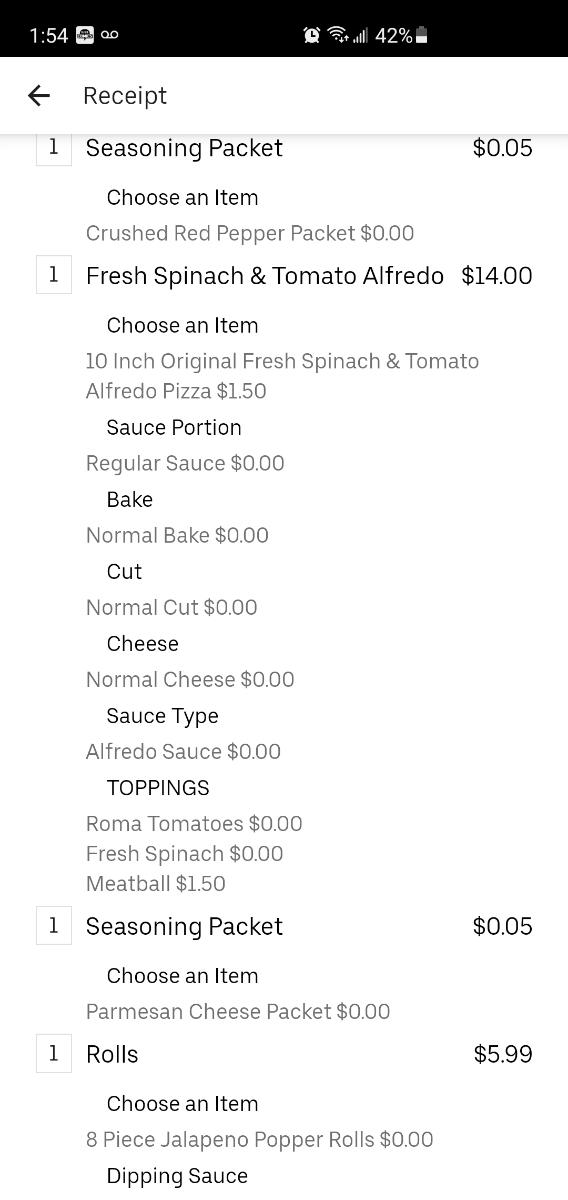 Read moreReally wish I would have come here and read the reviews ahead of time. I would have given it zero stars if possible all because customer service. I have ordered from this location a total of three times the first time went well. The second time it took a while and food arrived cold. Today and my final time I ordered online the tracker said my food left at 8:31, 9:20 comes along and low and behold no food. I call the store to find out where the food is and at first they are not sure then another women gets on the phone with an attitude asking when the app says the food left I tell her its going on an hour and the food left at 8:31 she says well he should be there soon he had four other deliveries that he had to make. I tell her I'm not really sure how that is my problem and there is no need to have an attitude, I am simply trying to find out where my food is. She tells me she doesn't have an attitude once again and says the food is on the way. So I take a deep breath in and get off the phone so I don't act out of my character. If it were not for the fact that the food is actually for my mother I would have canceled the order completely. I will never order...