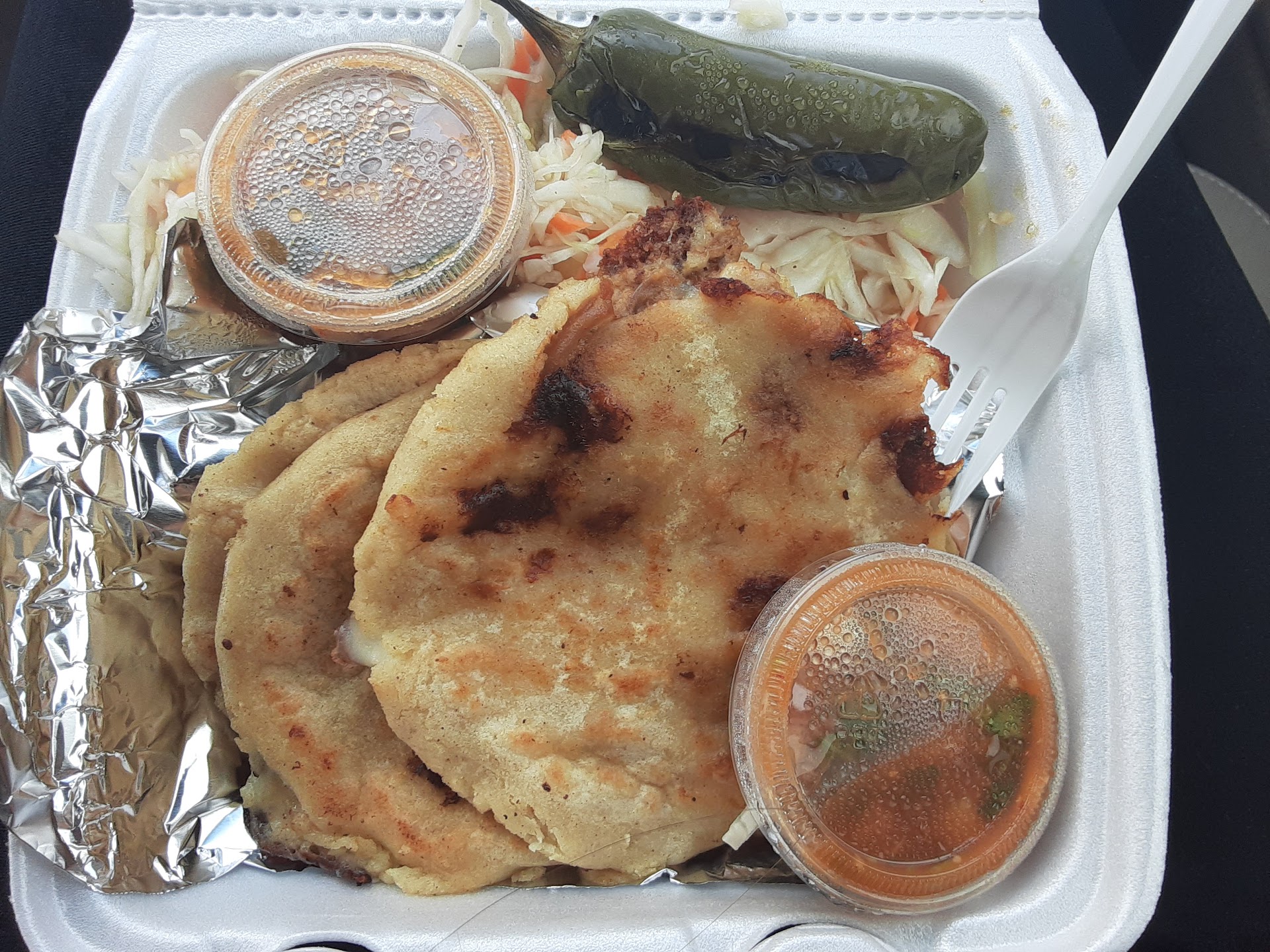 Read moreThe ladies are rude and very unfriendly. They have become very greedy with the meat and cheese that they put into the pupusa. The dish looks good and all but it's mainly just the masa very little meat and cheese placed in the middle of the pupusa. For the price along with attitudes from employees and homeless hanging outside asking for money I would avoid this place. It used to be really good! Now it's gone down I guess because of the clientele they've accumulated they stopped caring about the quality and quantity along with customer service they produce. It's to go only. Very small store so be prepared to be crowded while ordering or picking up...