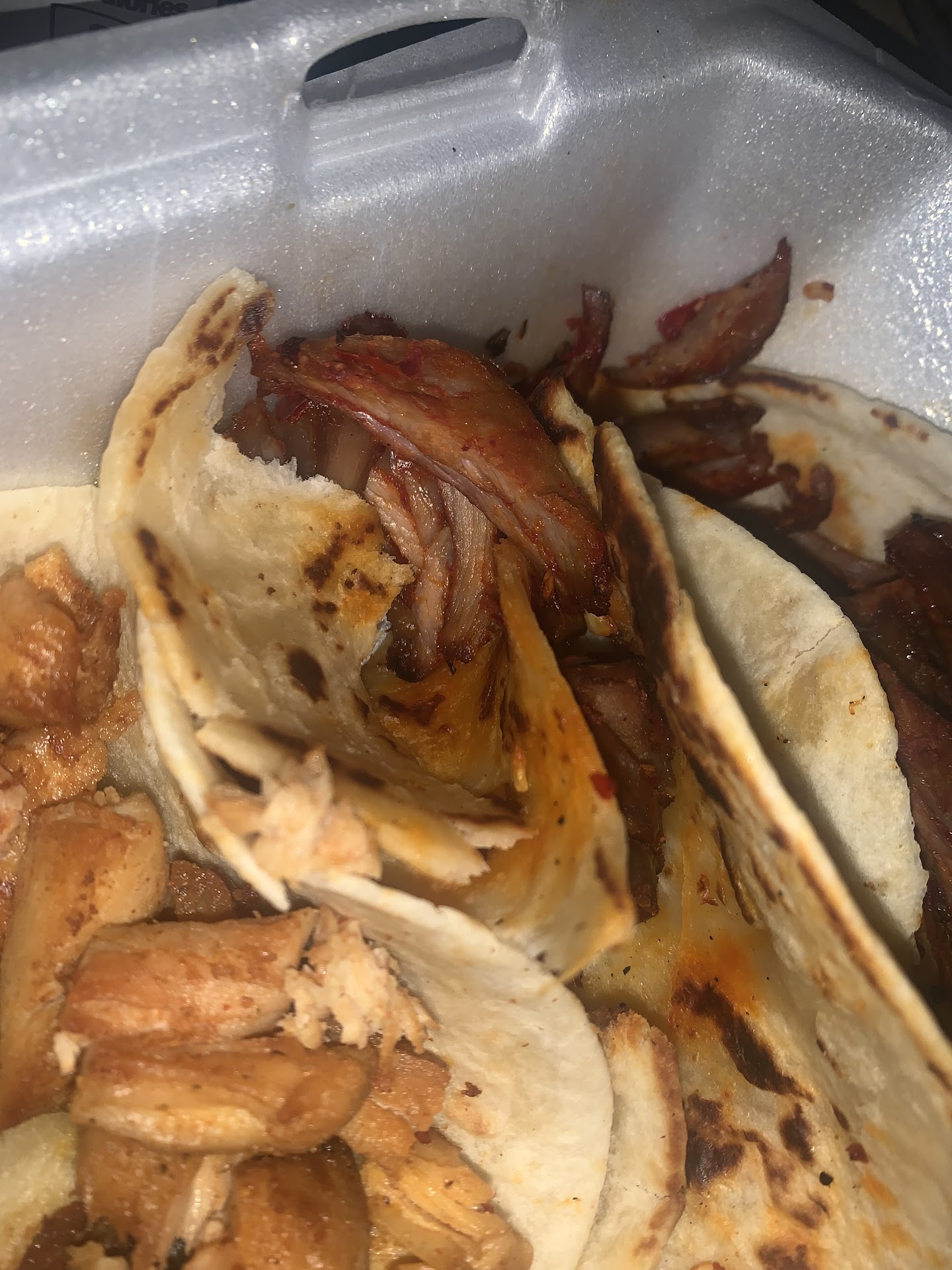 I ordered a chicken taco and got fish. The fish, pastor, and carnitas were all so dry and tasted a week old. I literally couldn’t eat it. There was no pineapple as advertised in pictures on the pastor. The beans tasted a week old as well. The guac is mostly tomatoes and onions with huge chunks of flavorless avocado. Absolutely zero seasoning of any kind. I will say the rice was delicious but was literally the only thing I could even eat. And the prices?! For this?! Go...