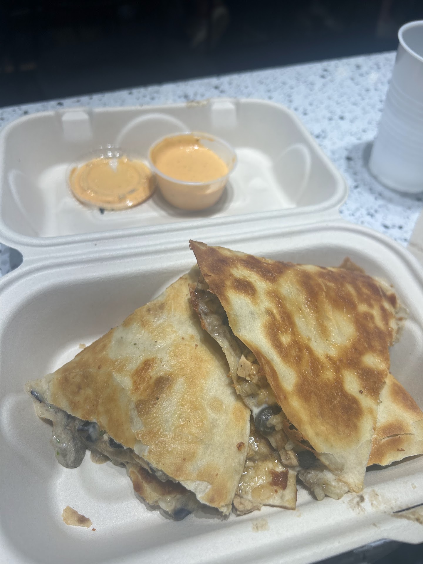 My own experience was pretty good. I got my order and it came out correctly. We got buffalo ranch on the side (recommended by the guy at the front) and I’m thankful we did. When I initially tried the quesadilla it was lacking flavor. Maybe because I got black beans but the whole inside was very bland. On the bright side with the sauce it was really yummy but I wish the quesadillas flavor was a bit more 🤌🤌. Maybe some seasoning in the black bean spread or something else that would add to it. I did really like the crunchiness though!