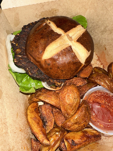 The toppings and condiments were thoughtfully chosen and complemented the patty beautifully. Crisp lettuce, ripe tomatoes, and a creamy vegan mayo combined to create a harmonious and satisfying flavor profile. The bun was fresh and slightly toasted, adding a wonderful texture to each bite.