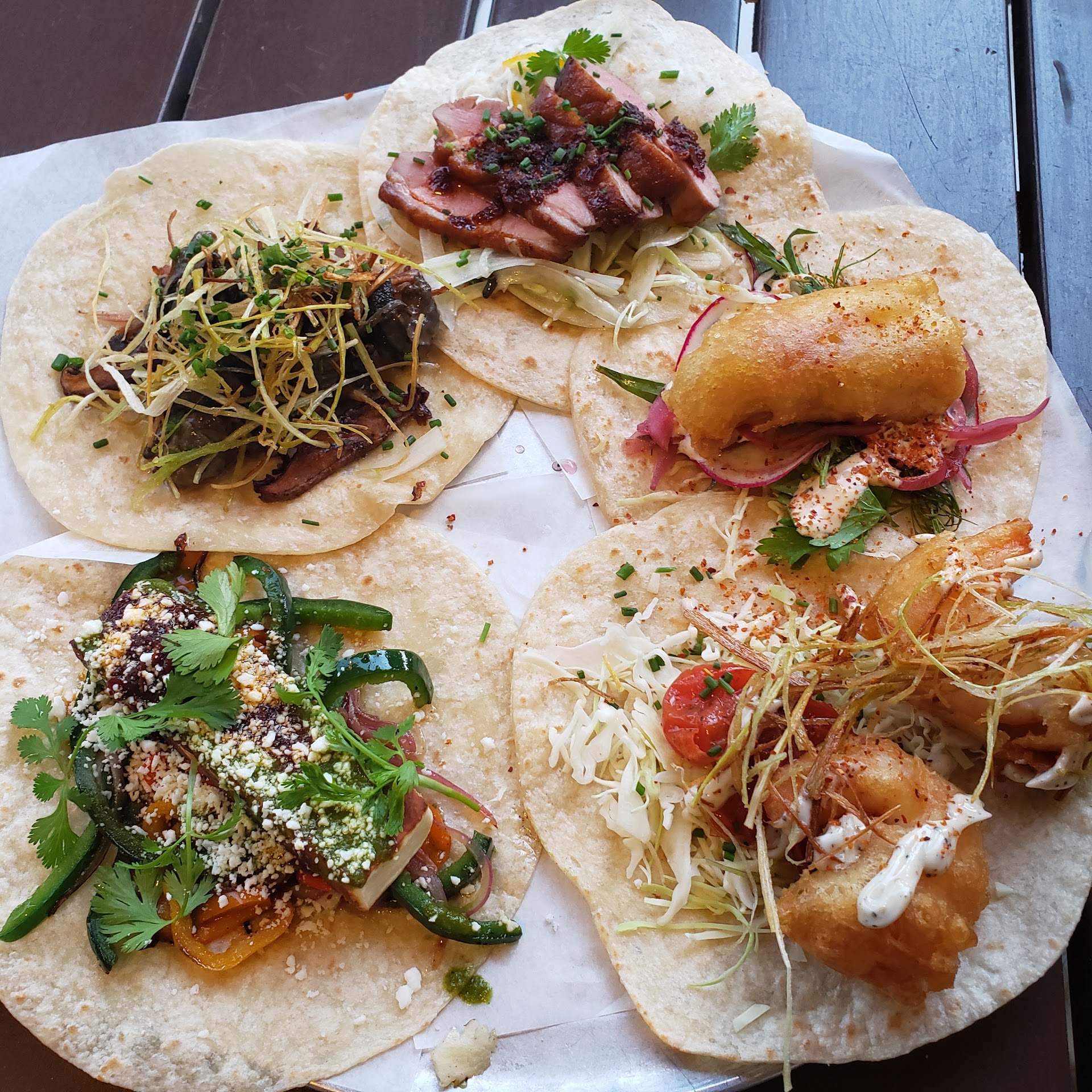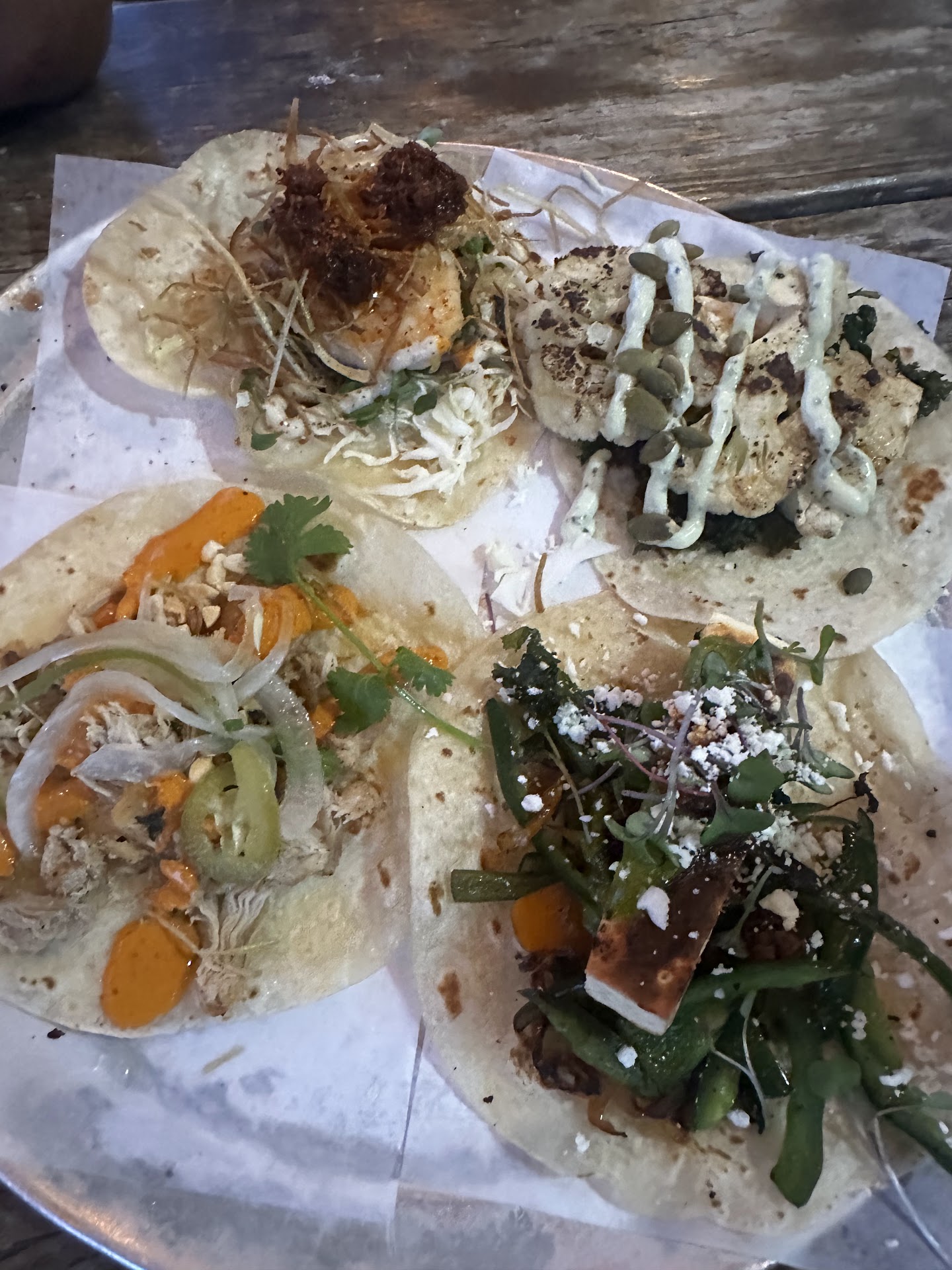 Read moreI have a super high bar for my food but I must say these tacos are amazing... no joke. I am on the ketogenic diet so i don't eat the tortillas and many of the options contained sugar which i was not very happy about. I avoided those options instead of trying to customize them. The chicken was the only taco we did not like, it was dry and flavorless. The cauliflower taco was super unique and delicious, and that's coming from me, a carnivore. I'm struggling to remember the other tacos... but trust me they were amazing. lol I will definitely be back. Oh yea my only real complaint is the service.. the young lady working there was not very friendly and made me feel like I was a burden rather than a customer. Granted this was early in the morning when they were still getting ready to serve the lunch menu instead of the premade breakfast tacos which were ok but i would not order those again. There was a guy, i'm assuming the manager, who gave me a sample of mezcal which was delicious, i had a couple more too. I had 3 shots and he mentioned they normally only give 2 or 3 before cutting people off which i thought is a stupid rule for people like me who have a high tolerance. :) Trust me i can handle my shots. lol EDIT Now i remember the tacos. Get the Lamb, short rib, cauliflower, mushroom, they are EXTREMELY good.. i dont know where in Texas i would go to get better tacos...