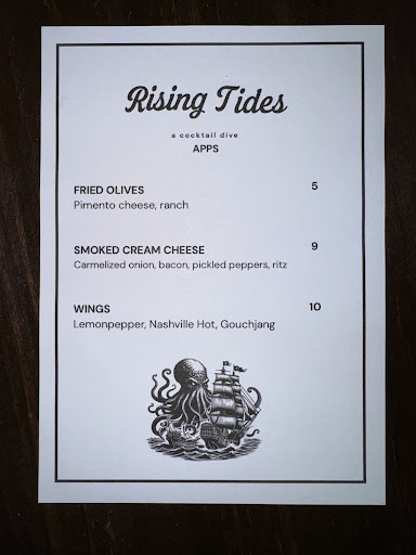 Read moreRising Tides is my new favorite neighborhood spot on Garland Rd! The vibe is playful and welcoming—think karaoke nights, a pool table, board games, a stage for live entertainment, and plenty of TVs to catch the game. There’s also a spacious outdoor patio with a huge screen that’s perfect for hanging out with friends. The food is seriously good! We tried the Mojo Pork Tacos, the Cuban Sando, and the Fried Olives—each one was a hit. And with burgers starting around $10, the prices are super reasonable, making it an easy go-to for a casual night out. Whether you’re looking for a fun evening of karaoke, a low-key game night, or just a solid meal with friends, Rising Tides delivers. A cool, middle-class local hangout that already feels...