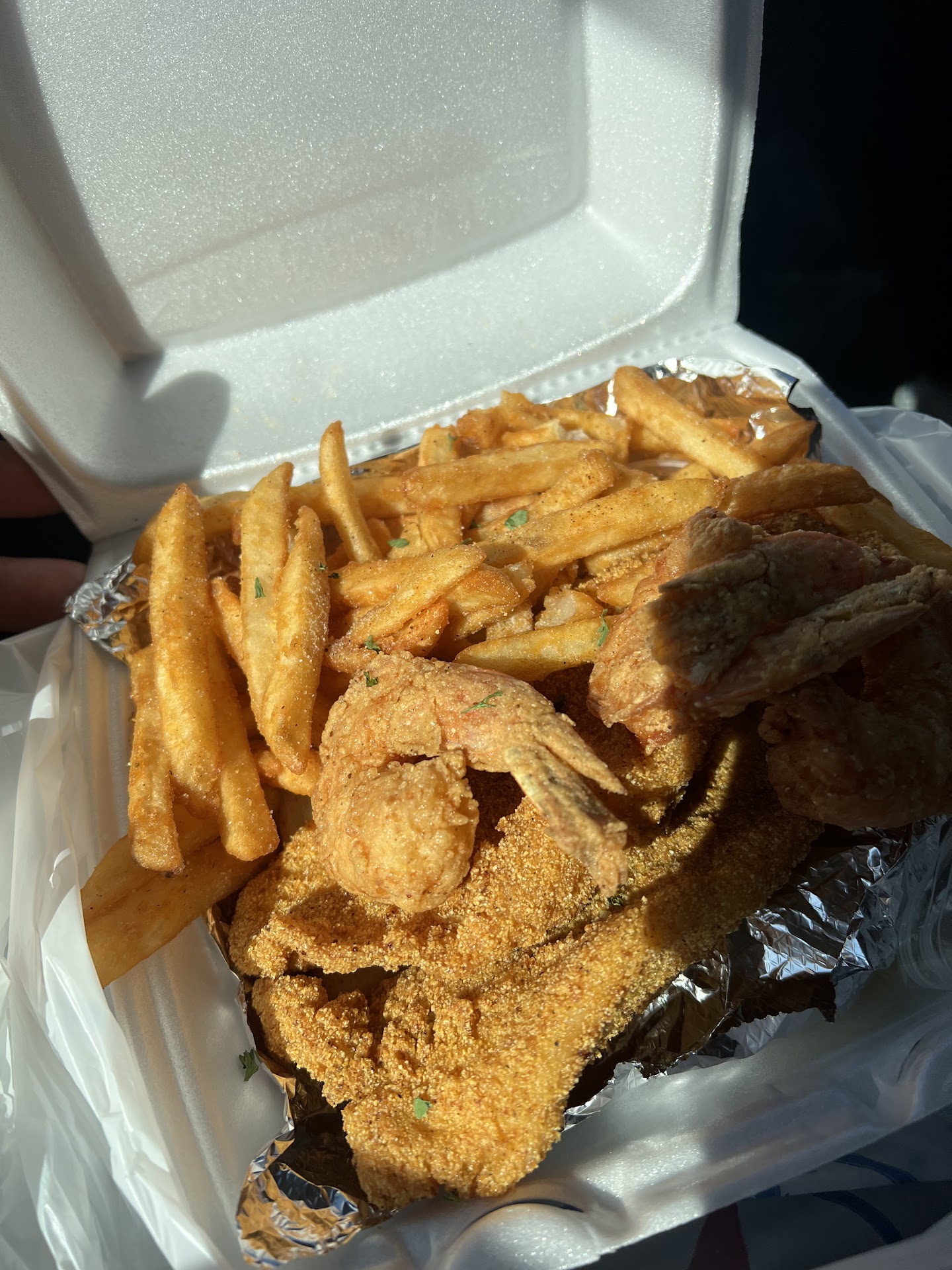 Read moreFirst time visiting here yesterday. You will past it if you’re not looking carefully because the sign is a bit small….The cashier didn’t have good customer service. She could have been more welcoming and friendly by speaking to customers when coming in and being more informative. She asked us were we paying with card and we answered yes” she informed us that the wifi was down and they couldn’t accept card but she didn’t inform us that they accepted Cash App until we overheard customers asking about the Cash App information when we came back from getting cash across the street. I wanted to order a burger basket but was informed the burger grill was down and not working so I ordered the wing basket which consisted of 2 flavors….I picked garlic parmesan and lemon pepper. The garlic Parmesan was only Parmesan from a bottle you buy out of a store and sprinkled on top and the lemon pepper wings were ok and had a bit of a sweet taste to it(wings I could of made at home tbh) the fries were really good but they don’t give you much. My mom ordered fish which was too salty and they only gave her 1 tarter sauce for a 3 piece basket. This place have potential I feel the wings need a homemade sauce with something to it instead of the lazy way out because you want customers to continue to come. We also tried their cakes(strawberry and cookies&cream cake) they were pretty good as well probably the best thing...