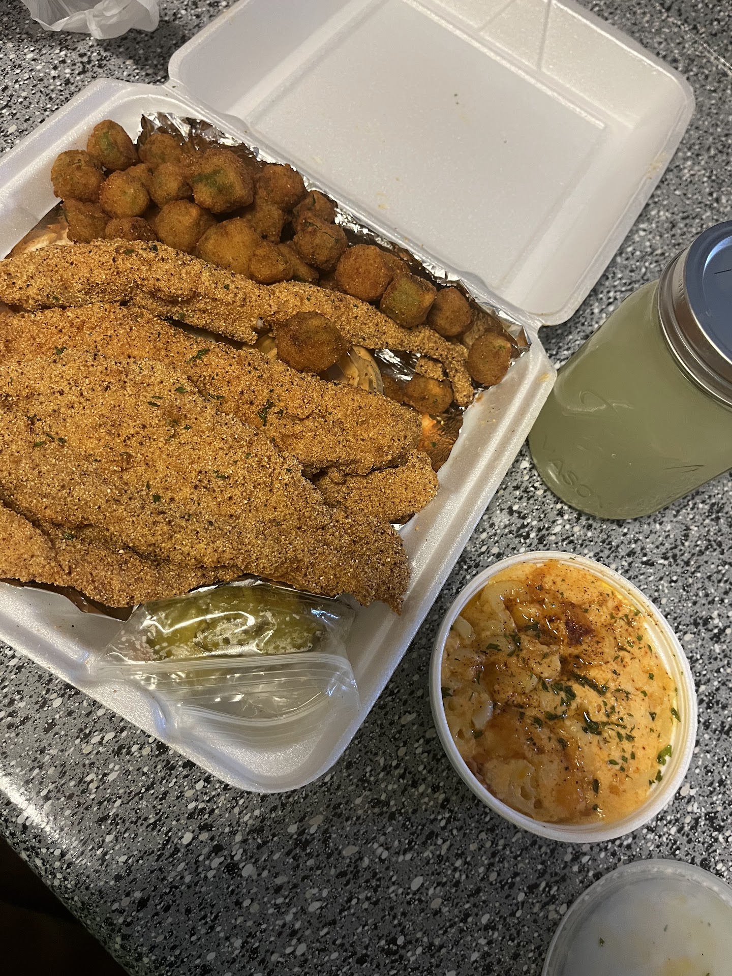 This place is tiny, so don't blink or you will miss it. I don't live in the area. On the way back home from being at the dealership in Arlington, I decided to stop since I was on 20 and as it was one of my Yelp bookmarks. It's to the left of the donut shop. I ordered the catfish 4 piece basket at $16+. It came with fries and a piece of bread. The fish and fries were cooked to order and well seasoned. To the gentleman in the back who prepared my order, you are appreciated. I have to be honest, I am usually focused on the food, but there are times when you simply have to look at other factors that go into the particular dining/ take out experience. The customer service needs improvement. Sometimes it doesn't matter how good the food is, if you don't get treated kindly/fairly in order to get the food, it can be a deal breaker. The young lady behind the register was talking to someone sitting at one of the tables. She clearly wasn't eating but having a conversation via speakerphone, making it a three way. I am a new customer and trying to ask questions and I pretty much had to compete with the threesome. Mind you, I am taking pictures and asking questions about food items and I said specifically said to the cashier, that I was doing a review on the establishment...maybe my work ethic only, but I definitely would have been on point. She could have cared less. An maybe this added to me being vexxed, but the lady that ordered right before me, asked about an extra sauce. She wanted another, and asked if there was a charge and the lady said, "No." She even went further to say, "You want some peppers?" I am not sure why her money was no good there but mine was. I went outside to get in my car to take a picture and noticed there was only 1 half full tartar sauce contained for 4 pieces of fish.....my head turned sideways. So, I walked back in and said, "Can I get another sauce, there is only one and I ordered a 4 piece?" Understanding it is a business to make money, I had $1.50 in my hand. The cashier held out her hand to take the money and I am like, "How much is it?" I'm like in my head, you gave that other lady sauce for free and you even offer her pickles but you don't even tell me how much each container is before putting your hand out? She says, $1 something..." I gave her a $1.25, she handed me 2 containers and I left. All I am saying is, if you have paying customers asking legitimate questions about the business, they come first before personal interaction. One tartar really isn't enough for 4 pieces of fish in my opinion and it does make a person feel some kind of way when they witness other customers getting additional sauces and peppers for free. I have tried other establishments who do add two sauces and pickles and peppers are included without...