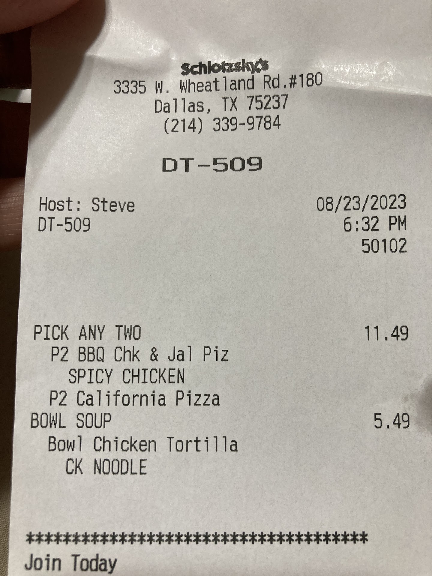 I am so upset. The devil knows how to creep in. Schlotzshy's Duncanville Tx across from Methodist hospital in down the street. From Sam's will never get my...