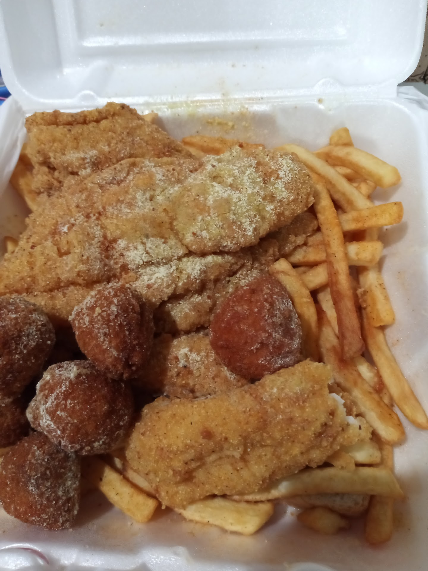 Read moreI've eating at this place (about 7 or 8 times), but today was my last day to ever step foot in restaurant again. My co-worker and I decided to go here for lunch, upon driving up - you see a hand full of thugs just walking around, OK fine. We enter and the little guy taking the order was so impatient and rude, I order 4 wings and fries and asked him not to put that extra seasoning on my food because it's not a good taste - I guess he got offended because he rudely said, "it's lemon pepper". NO IT"s NOT, but whatever. Then I asked if I could have a Butter Scotch Shake? The machine is down, then my co-worker wanted some Banana Pudding - That's a No Go. That's when I looked at my co-worker and said, "we should have gone on the South side". I guess that really made him made, because once we got back to work, I open the bag, my fries look like they were old and my chicken tasted like it was reheated. That's my fault, once he started showing me attitude, I should have stood at the counter and watched them make my food. In any case, I will not go back or recommend any one to go here. If you go at night, have the...