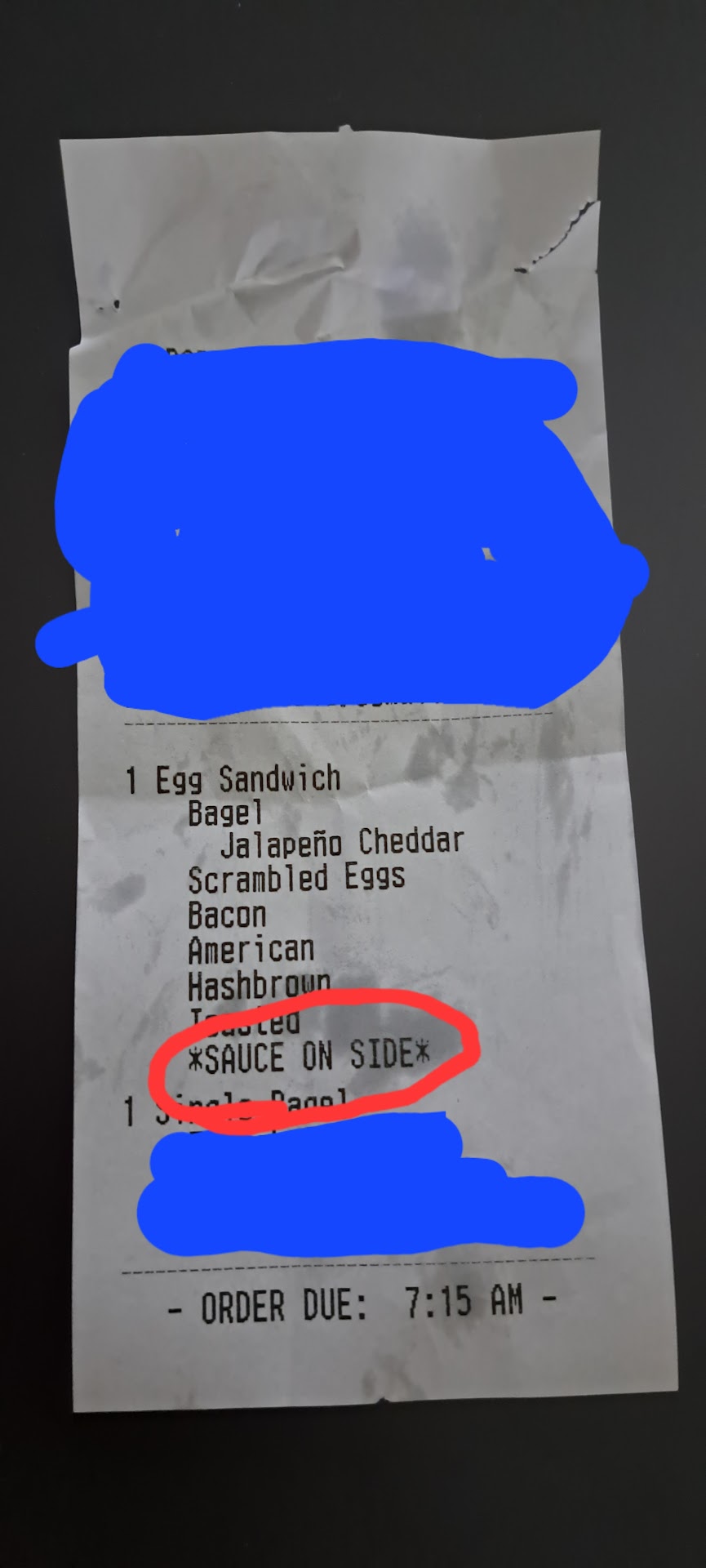 Update: 10/24/24 (See pics) Shugs menu offers a Shug, Shug sauce is one of the ingredients of the sandwich, so when you select the option of "sauce on the side" the website does not force you to select a individual sauce like it does on the bagel or even type of egg. So basically someone made a mistake by not providing sauce on the side, I made a comment in what was still a positive review, and someone thought they would cease upon the opportunity to disrespect me, by belittling me for saying something about the mistake.