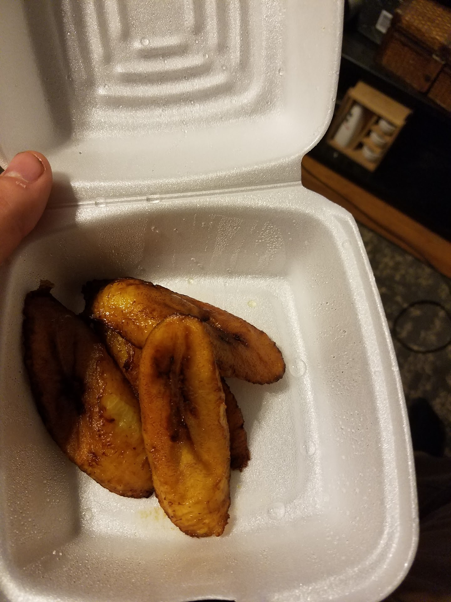 Meanwhile I've been here 20 mins. I asked about my order...its coming mam. Another 25 mins later my order was ready. Jollof rice, goat meat and plaintain, and one extra jollof! Im really unsure what took soo long. The food wasn't hot, I would say warm.