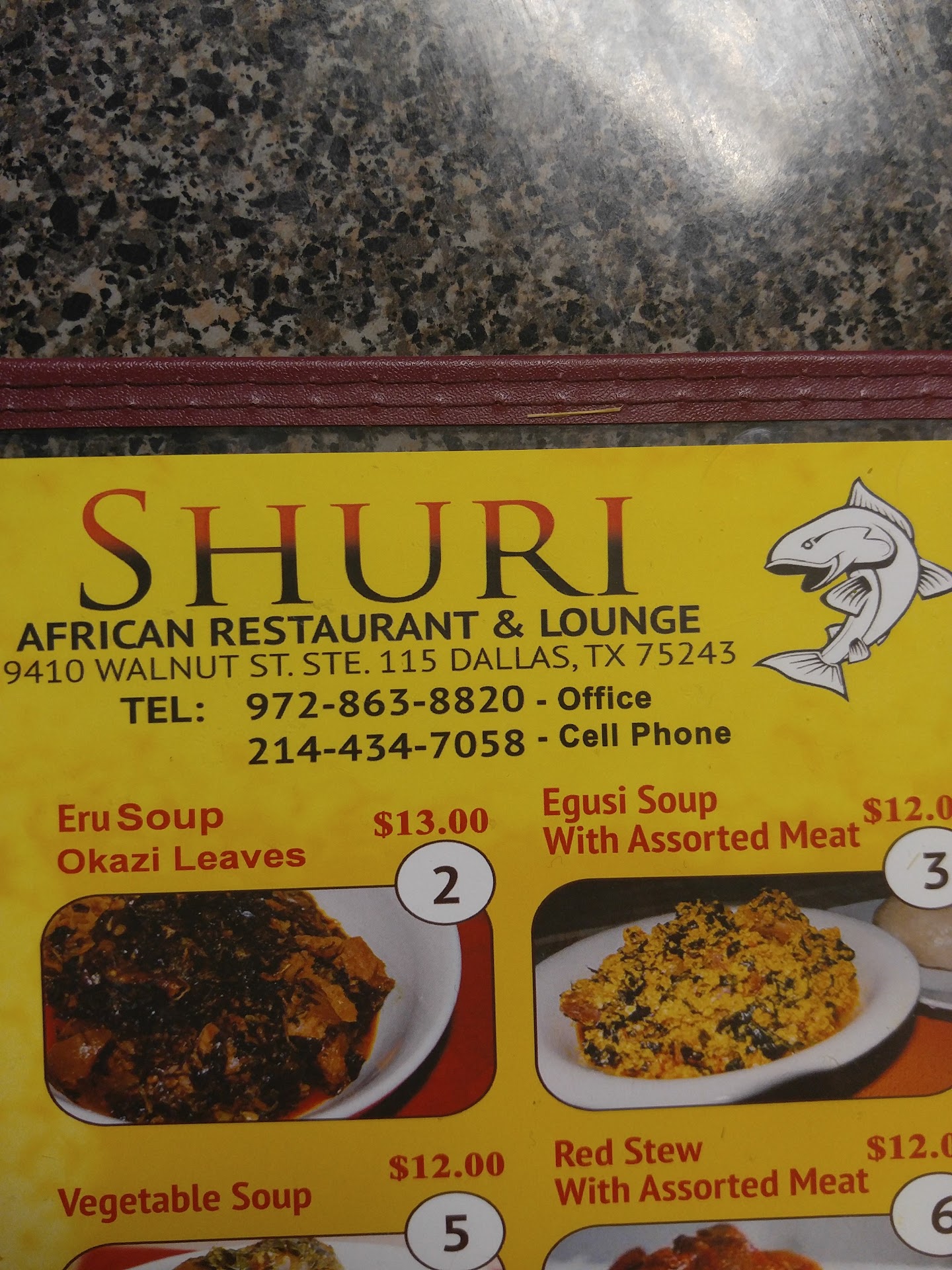 I was excited to finally find an African restaurant to try authentic food. So, before going, I saw different chefs make similar dishes I wanted to try. To my surprise, there wasn't much on the menu at Shuri, so I ordered Egusi soup with pounded yam, and after seeing it being cooked several times, the consistency of what I received was completely different. It was so greasy compared to what I had seen, and it was so hot there was no way to eat it without a spoon. Once it cooled down a bit enough to eat as intended it had no real flavor to it, just a bit spicy. I tried the Jollof rice, and goat. The Jollof rice was very good, but the goat still had skin on it. There was very little meat and, tasted like old and too tough to eat. I only enjoyed the Jollof rice. So for 43.00 I enjoyed rice. The location was very quiet, but I think that it would be better to have African music softly playing than depressing news. When people go to eat they want to enjoy a relaxing atmosphere not listen to negative happenings going on. Unfortunately, after my experience I would not revisit...