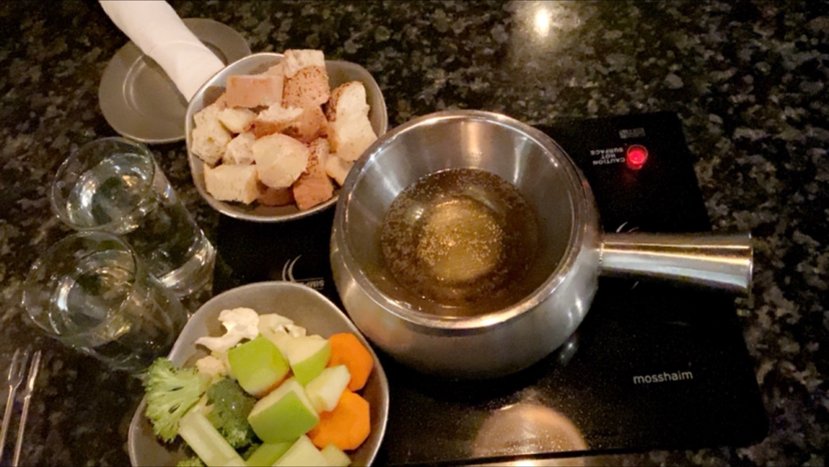 Fearing other diners would be equally displeased at our beloved Simply Fondue, we brought this to the attention of the manager (Jessica, I think). She apologized sincerely, offered to replace our meat immediately, reported that the (brand new) chef had been admonished, and followed up later re: our satisfaction with the meal quality. She even discounted the bill heavily - even though we were using a Groupon - and offered a coupon for the New Year's Eve dining event. But even uncharacteristically sub-par food can be forgiven with gracious management response such as this; no restaurant or chef is wholly perfect.