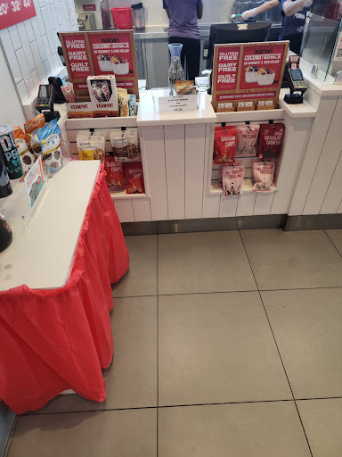 since today is friday they offer the free upgrade to any size. i ordered a 32oz angel food and asked the kind employee to split the portion into two cups so that i can help my portion control. he was very accommodating with me. i ended up getting the smoothie split into three 12oz cups! this goes to show that he respects my need for portion control and went out of his way to make a customer happy.