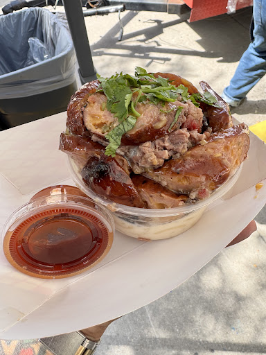 A West Dallas GEM š So this location is in a parking lot in the back on the left side It has a nice covered patio area and also table seating for 4 it had these cute little fans on the tables Iām guessing it was for the flies for when youāre eating (So you donāt have to keep fanning your hand ) I mean hey BBQ Without A few Flies is it really bbq { Texas Thang ) lol But no cute little wall art it also has a nice 2nd floor area on the covered patio as well music going also The owner/Chef Cook whatever you wanna call him Lol Definitely knows what heās doing THE FOOD WAS AMAZING !!!!! I got the El NiƱo It Was $32 Came With Your Choice Of 3 Meats I Chose The Sliced brisket , Smoked Turkey , and Cheese Sausage links With Bacon Mac n Cheese And a Armadillo JalapeƱo Popper Stuffed With brisket wrapped with Bacon Everything Was Literally 10/10 And The drinks are Fresca Watermelon And Lime Tried The lime And it Did Not Even Make It To The House Lol He also has soda as well The baked Potatoās Are humongous with your choice of 1-3 meats It was a 10/10 Very satisfied THE MEAT WAS SO MOIST AND BURSTING WITH FLAVOR DONāT WALK RUN...