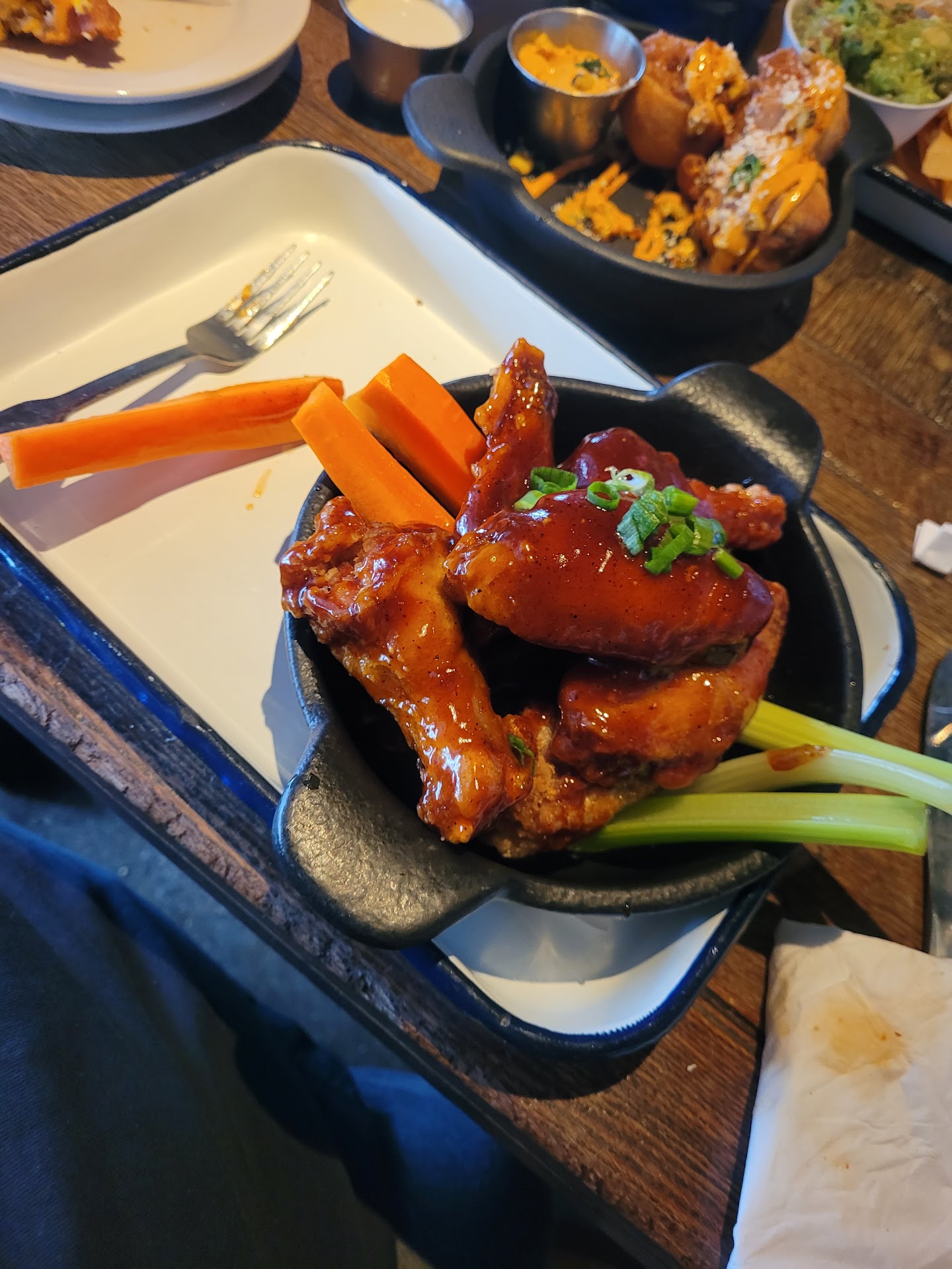 Hot Mexican Chili Arbol Wings to go - Came with a hand sanitizing wipe. Medium crispy on the outside. Good flavor.