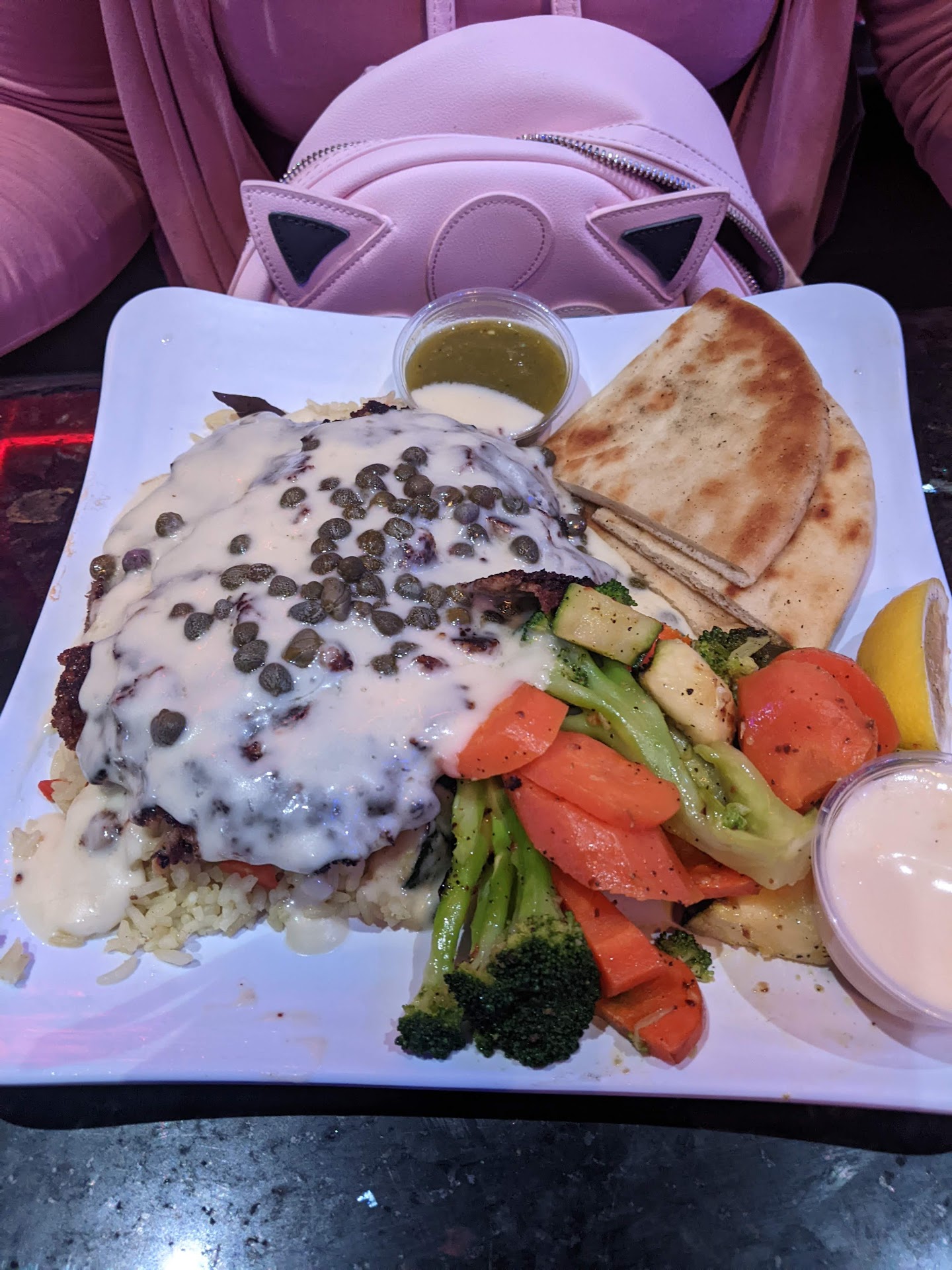 The food was hit and miss -Gyro and Tzatziki/w pita was tasty but the other items were lacking in flavor. Dolma’s were just ok and Moussaka was bland. Since they don't have kids meals had to order off regular adult size menu- ordered catfish (extremely strong fishy flavor & I like catfish), chicken tenders (hey it's a chicken tender) and fettuccine alfredo (it's a Greek restruant so don't waste your time...also ordered it w/grilled chicken (for a kid) but was served spicy Cajun blackened chicken)