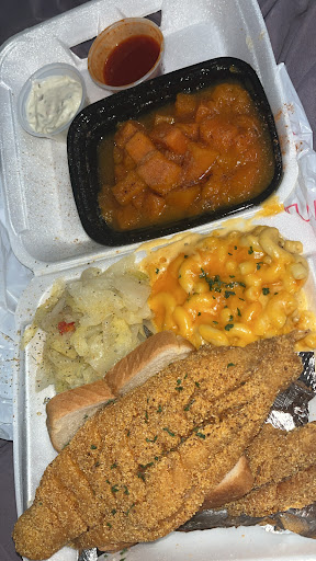 The employees were very nice. ๐๐๐ I really appreciated their kindness, especially after waiting on my fish dinner for close to 30 minutes... and there was no one else in the place. ๐ณ๐ณ They gave me a free refill as I left instead of charging me the normal $2 fee for it. It was some great Kool-Aid, the star of the show! ๐๐ As for the food, it was okay. They do give nice-sized portions. My fish was fried perfectly, but it was not seasoned well at all. I added salt and pepper, though. My mashed potatoes were not fresh. They sort of just crumbled when I put my fork into them. I asked for gravy but it was some sort of watery broth or something. I added a little of it to the potatoes any way to try to help them be more creamy. Hmmm... The cabbage was pretty good, nice flavor and texture. I just needed a little AC vinegar on them. ๐๐ I've never been to a sit-down restaurant that didn't have a public restroom. ๐ณ๐ณ๐ณ That was really different for me. ๐ค๐ค And it appears that there is no air conditioner working. They use a big industrial fan which isn't pointed toward the dining area so I was a little warm as I ate. ๐ฅ๐ฅ๐ณ Overall, I wouldn't go out of my way again to return, but I would give them another try if I'm in the neighborhood. Hey, we all can have an occasional bad/off day, especially with food, so I'm up for another try! ๐๐ Again, the employees were great, and I love to support our black-owned businesses. ๐ฏ Try it for yourself because everyone has different taste...