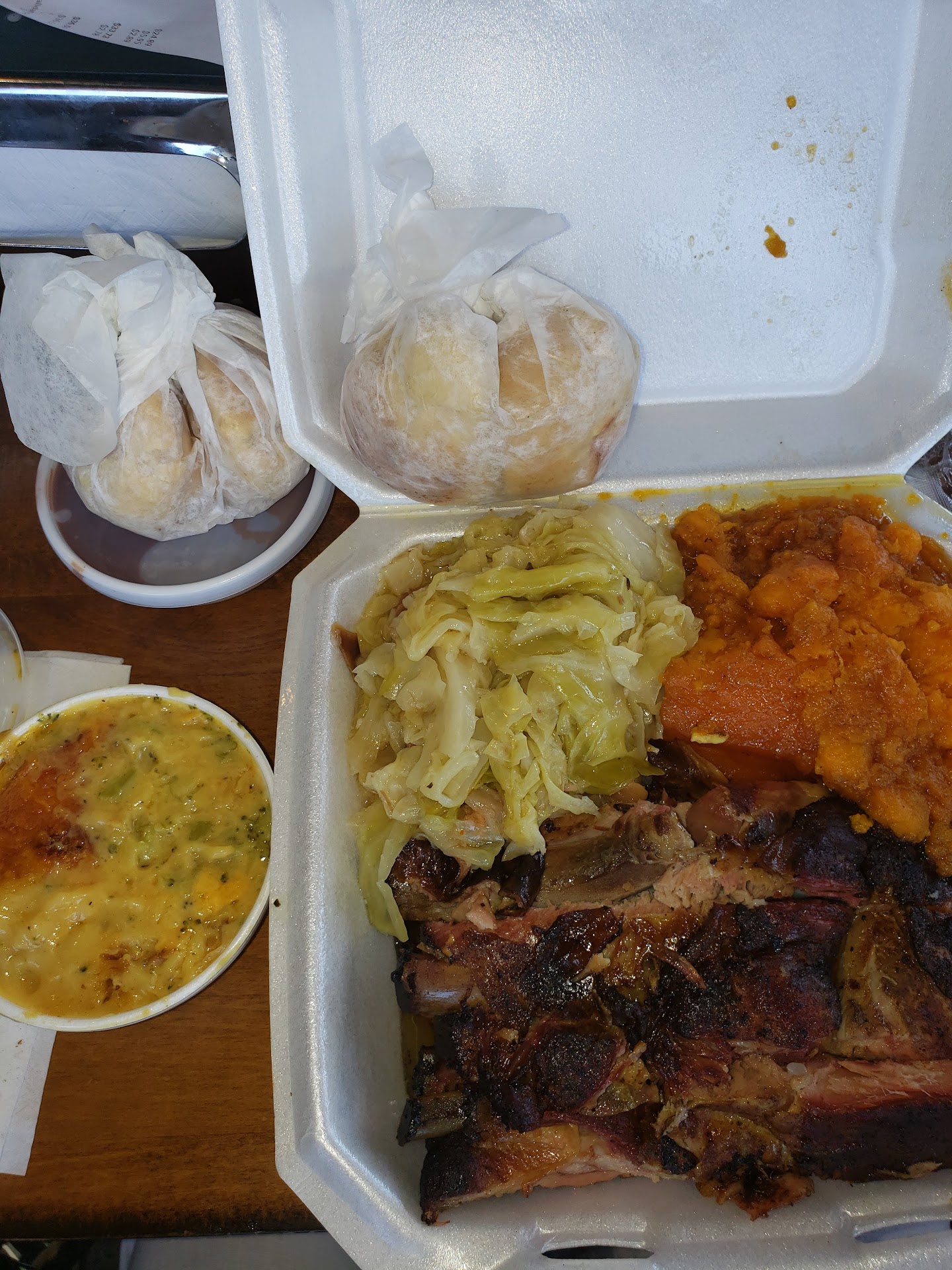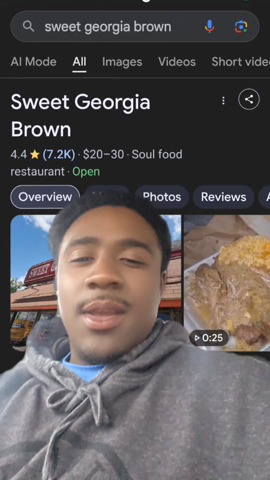 Ā Ā Ā Read moreOMG yāall!!! The food here is so AMAZING!! After a long day of doctorās appointments, the hubby & I were ravenous and in need of food in a hurry. We were elated to find Sweet Georgia Brown was only 1.2 miles away from the VA hospital. Itās a place Iāve wanted to try for a while, and today was the day! I am delighted to say that we loved everything we tried. We ordered 3 plates, and they were loaded to the max! We had the fried pork chops, baked chicken, and brisket. Our sides were broccoli cheese rice x2, cabbage x2, black eyed peas x2, potato salad, sweet potatoes, and collard greens. So, I couldnāt decide what meat I wanted (because it all looked so good) and since I had to bring back a plate for my son, I picked the fried pork chops and brisket, along with sides weād both enjoy. Hubby and I found a table and feasted, sampling to our heartsā content! There was still so much food to take home that we had plenty for the kid and leftovers for us, to the tune of 4 to-go boxes still loaded and 3 tubs of sides. This place is a little slice of Heaven, especially for a girl who misses her grandmaās cooking. The brisket was tender and full of flavor, the greens were so good that Mamawās are now in second place (Iām sorry, Mamaw! Please donāt haunt me!) The pork chops made my eyes roll back into my head, and lordy, that cornbread was the bomb! The cabbage was so good, I was transported back in time to when the world made sense, and I canāt say enough about the black eyed peas! Omg! And letās just say the broccoli rice casserole was LIFE CHANGING. It felt like this girl was invited to the cookout, and I loved every minute of it. I was even dancing in my seat as I was enraptured by every bite! Great music, great service, comfortable seating, and phenomenal food! Also, they get really busy, so make sure you get there early and have alternate choices in mind, in case your first choices are sold out. Oh and they also do catering, in case you didnāt know! We...