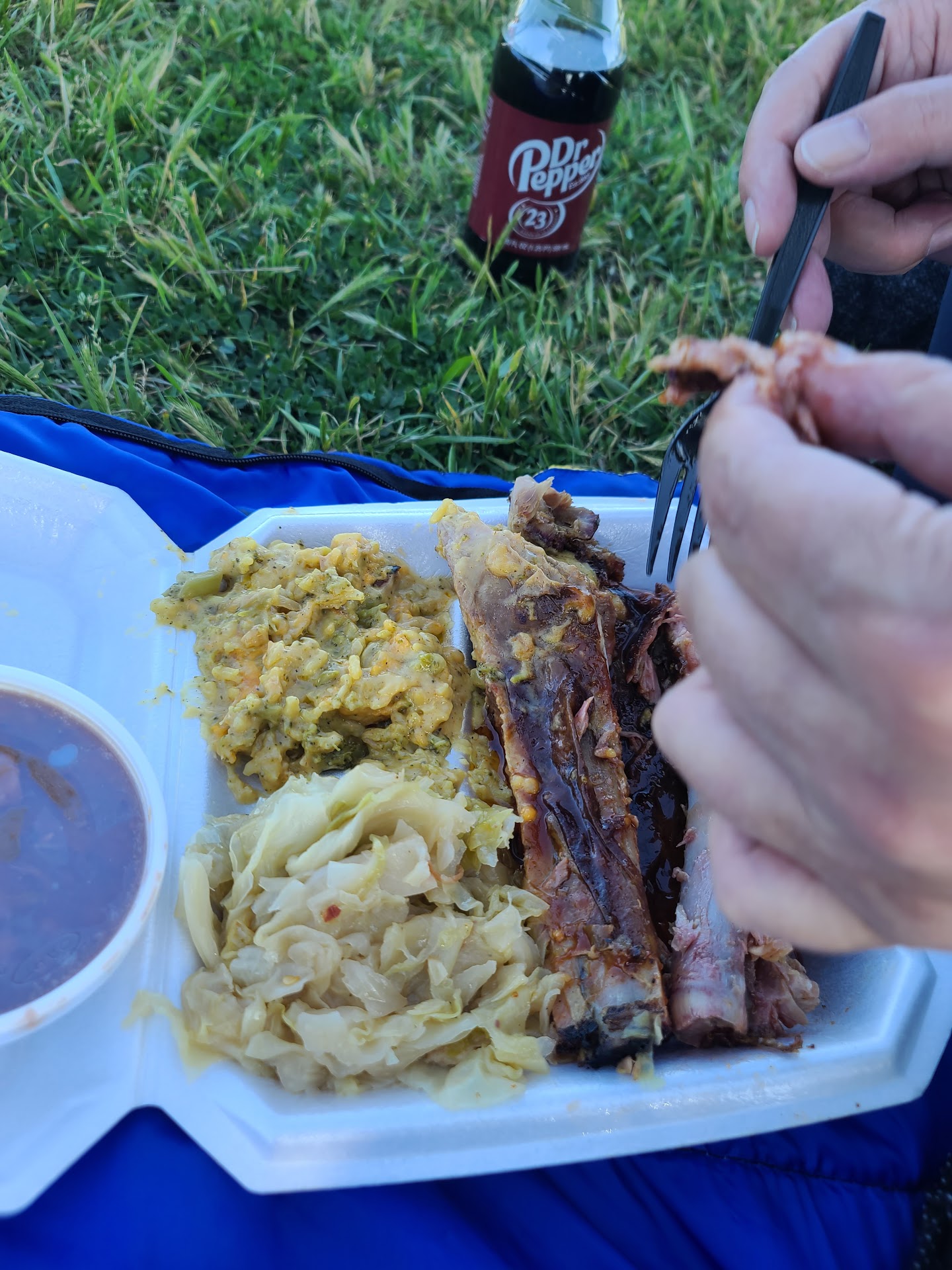 Read moreOMG y’all!!! The food here is so AMAZING!! After a long day of doctor’s appointments, the hubby & I were ravenous and in need of food in a hurry. We were elated to find Sweet Georgia Brown was only 1.2 miles away from the VA hospital. It’s a place I’ve wanted to try for a while, and today was the day! I am delighted to say that we loved everything we tried. We ordered 3 plates, and they were loaded to the max! We had the fried pork chops, baked chicken, and brisket. Our sides were broccoli cheese rice x2, cabbage x2, black eyed peas x2, potato salad, sweet potatoes, and collard greens. So, I couldn’t decide what meat I wanted (because it all looked so good) and since I had to bring back a plate for my son, I picked the fried pork chops and brisket, along with sides we’d both enjoy. Hubby and I found a table and feasted, sampling to our hearts’ content! There was still so much food to take home that we had plenty for the kid and leftovers for us, to the tune of 4 to-go boxes still loaded and 3 tubs of sides. This place is a little slice of Heaven, especially for a girl who misses her grandma’s cooking. The brisket was tender and full of flavor, the greens were so good that Mamaw’s are now in second place (I’m sorry, Mamaw! Please don’t haunt me!) The pork chops made my eyes roll back into my head, and lordy, that cornbread was the bomb! The cabbage was so good, I was transported back in time to when the world made sense, and I can’t say enough about the black eyed peas! Omg! And let’s just say the broccoli rice casserole was LIFE CHANGING. It felt like this girl was invited to the cookout, and I loved every minute of it. I was even dancing in my seat as I was enraptured by every bite! Great music, great service, comfortable seating, and phenomenal food! Also, they get really busy, so make sure you get there early and have alternate choices in mind, in case your first choices are sold out. Oh and they also do catering, in case you didn’t know! We...