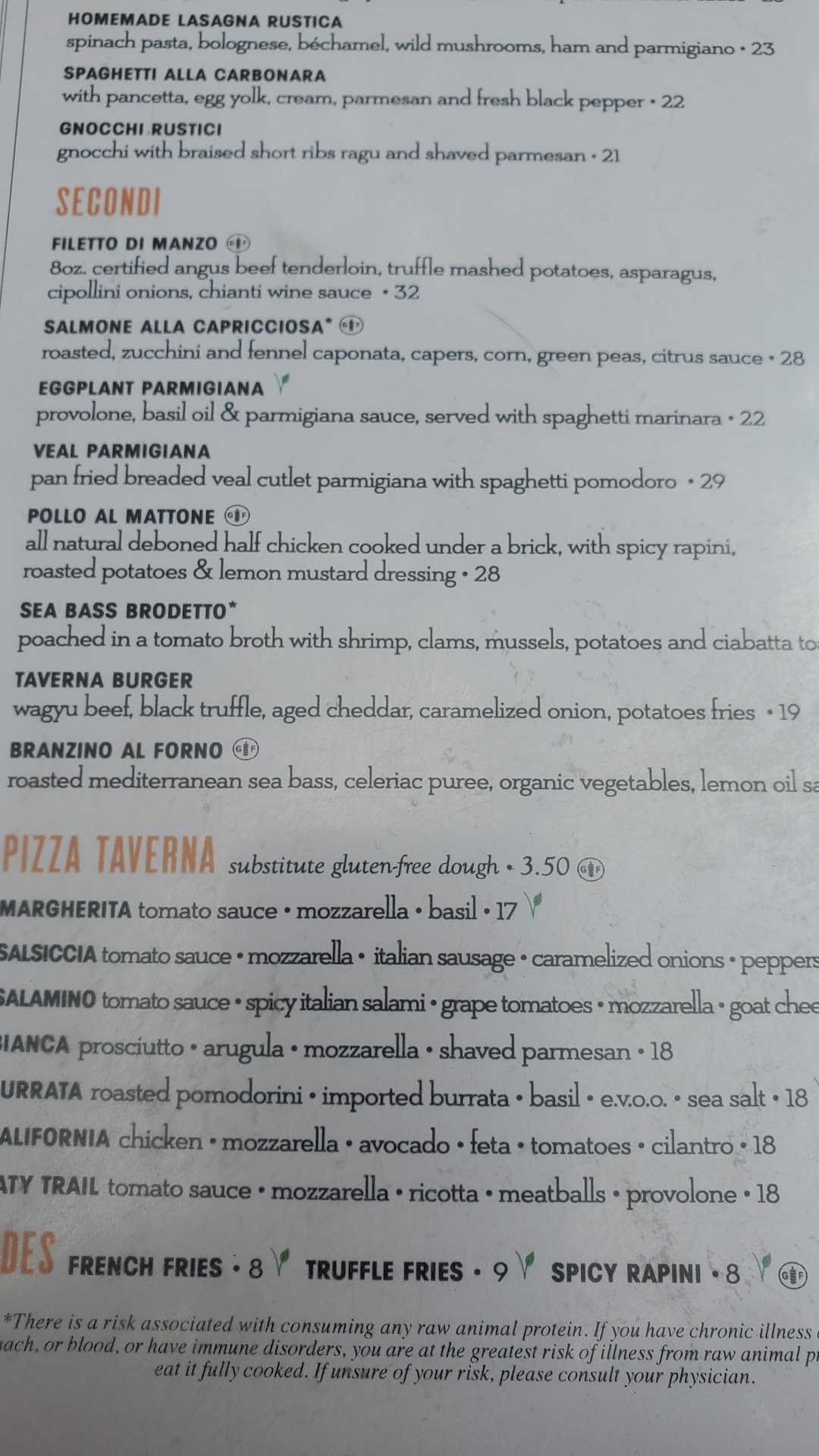 What a beautiful place! I felt like I was on the streets of Italy. The sidewalk dining was charming with the lovely railing separating you from the traffic. The awning is a nice touch, but it felt more homey sitting in the patio on the side of the building. The trees had little twinkly lights and the birds were flying around (not too crazy). It was super nice. You could turn to speak to someone at the next table and feel like it was one big gathering if you wanted to. Now for the service: Our server was attentive, professional and knew his stuff! He checked on us often and gave us time when we were indecisive. His suggestion of the Lagardia wine was excellent ($36 for the bottle). We began with the mussels ($18). Loved the sauce - even more than Trulucks. The accompanying bread was perfect for dipping. Mussels can be tricky - these were wonderful. I ordered the seabass ($34) and my sis ordered the Tavera burger ($19). She loved her burger!! Couldn't finish it, of course (see photo). I stole a couple of fries & had a tiny bite of meat. It was very good. My seabass was cooked perfectly and the sauce was the same as the mussels, so I was happy. The shrimp was full of flavor, yum!! Be careful of the lemon garnish on top - I wasn't paying attention & ate a bite - wow! LOL Alexis (our server) didn't have to twist our arm to much for dessert - we split a chocolate mousse. Divine!! Overall, the experience was very nice and I would recommend this place. We got in at a great time - no wait - but it got really busy before we left (7pm...