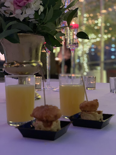 The large outdoor terrace/patio at The Artisan is very chic: you are eating dinner outside in the middle of downtown Dallas with the Winspear Opera on one side and the rest of the views are dominated by high rises and skyscrapers. The terrace can easily hold 150-200+ people, so our gathering of 30 had plenty of room to move around and mingle. There was also ample shade and seating, with couches and chairs strategically placed near shade trees, etc.