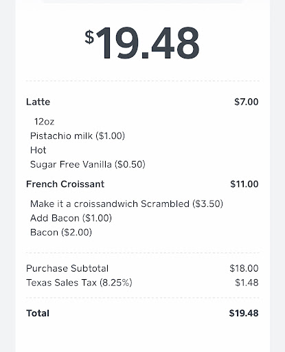 Read moreIn my opinion, this place is overpriced, staff often comes off cold and unwelcoming, and it takes soooo long to get your order compared to other coffee shops. I’d recommend making sure you watch what they charge. Today, again ( after not coming here for 2 + months because of the last bad experience) I had charges that didn’t make sense. I simply asked if I could add the +$1.00 bacon two times. After looking at receipt, they charged me $1.00 and then an additional $2.00?….The server Nancy said “that’s just how it is”…. I was shocked! It’s not about the money, it’s about principle. I live across the street and gave up on this place months ago. Finally decided to try it ONE more time. Never again. I’ll just continue walking 2 blocks to Starbucks where people are always friendly. The staff literally were talking about me in the kitchen while I waited for my food which left me feeling irritated this morning. Paid almost 20$ for a breakfast sandwich and coffee which means service should be great. Box and Brewed across the street is a great example of great customer service. Starbucks on Akard has great customer service… I have never in my life been to a coffee shop where staff make you feel like you’re inconveniencing them.. Again, just look at the food. Is that...