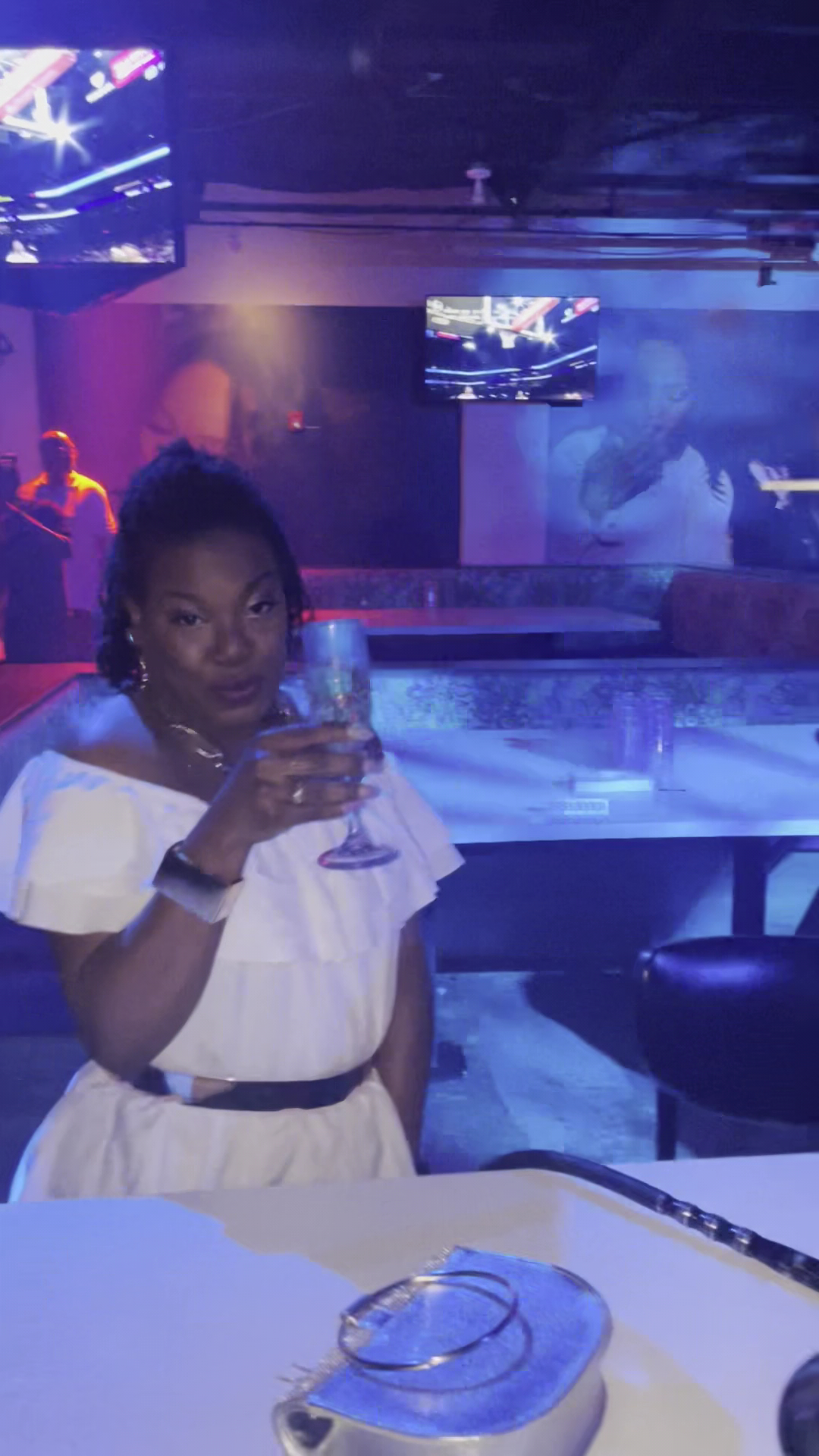 When we walked up to the venue, there were two metal detectors we had to pass through. (I was thinking, this is probably somewhere I don’t need to be ) After that, you were militantly told to turn around, they frisked us (women). Then we handed over our purses which were basically dumped out and searched. I had a pair of cute bling sandals in my bag in case I needed to change. I was told I could not take them in; I had to wear heels. I had to leave them with security. 🤨 I watch other females walk in with sandals, mules, of all things SNEAKERS. I didn’t like that.