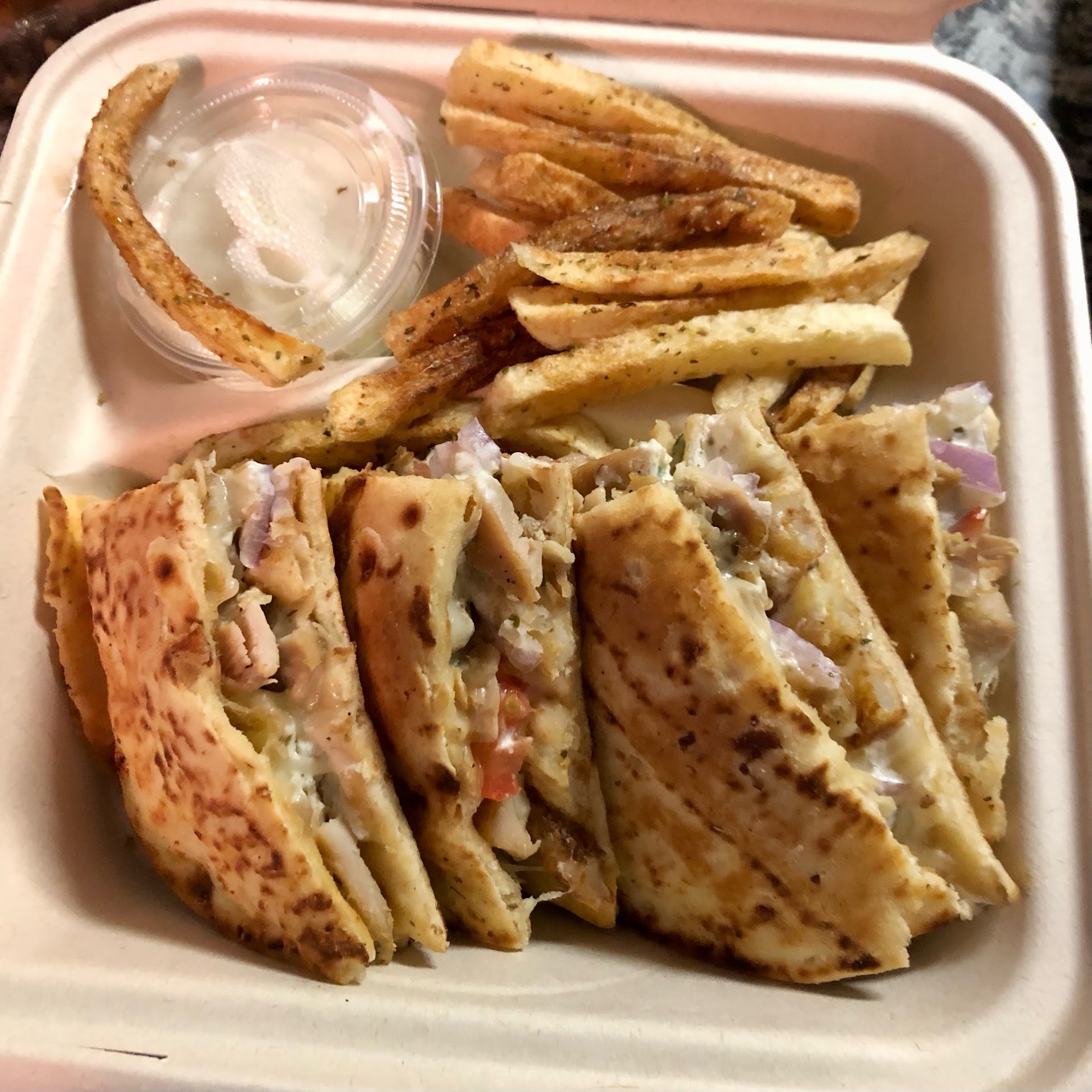 I rarely leave reviews for anything, but I absolutely had to for this place! Kalamaki Greek Eatery is located in a restaurant co-op where multiple restaurants/kitchens are all located under one roof and the ordering can be conveniently done at a kiosk. My husband and I got the skepasti (Greek quesadilla), one with chicken and the other with pork. They both were phenomenal - seasoned perfectly, the ingredients were fresh, and the portions were so generous - totally worth the price! We also couldn’t pass up on the desserts they offer, so we tried all of them - the baklava, bougatsa, and loukoumades and they did not disappoint one bit! If I had to choose, the bougatsa had to be my favorite! A tip is to microwave the loukoumades ever-so-slightly and that’ll make them even tastier! I genuinely hope others can also get the chance to try them out!! I definitely...