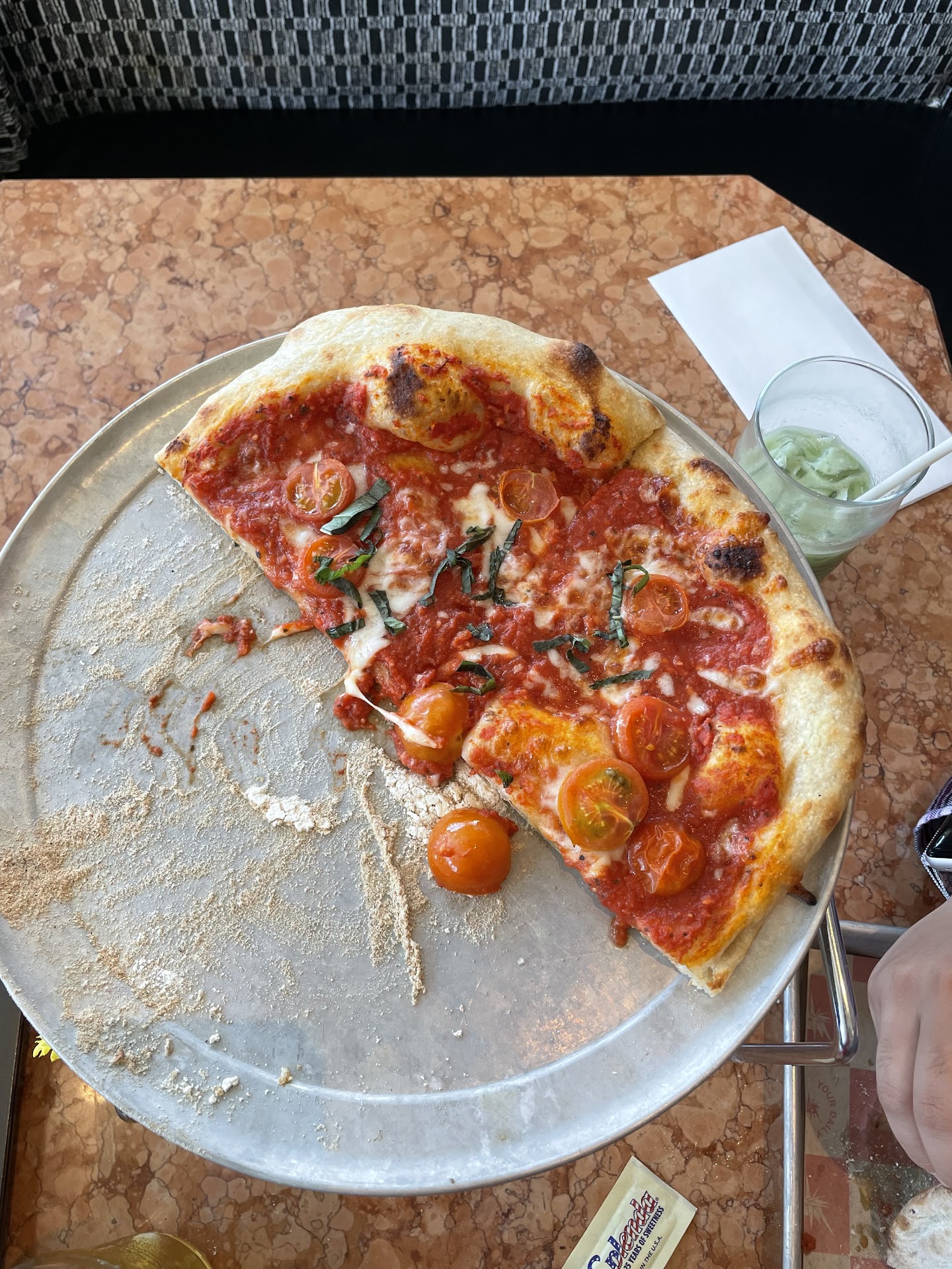 The Meteor is overpriced simply because of its location and vibe. Itâs definitely a cute place to hangout and get some work done but the food was disappointing to say the least. I ordered the Maglia Rosa pizza, which apparently only comes with a tiny sliver of cheese and is covered in flour. Eating this was like eating bread covered in sawdust and spicy marinera. Their jasmine green tea was just okay after adding 3 packets of Splenda to give it taste and their matcha latte with vanilla was probably the best thing, although it was nothing out of this world.