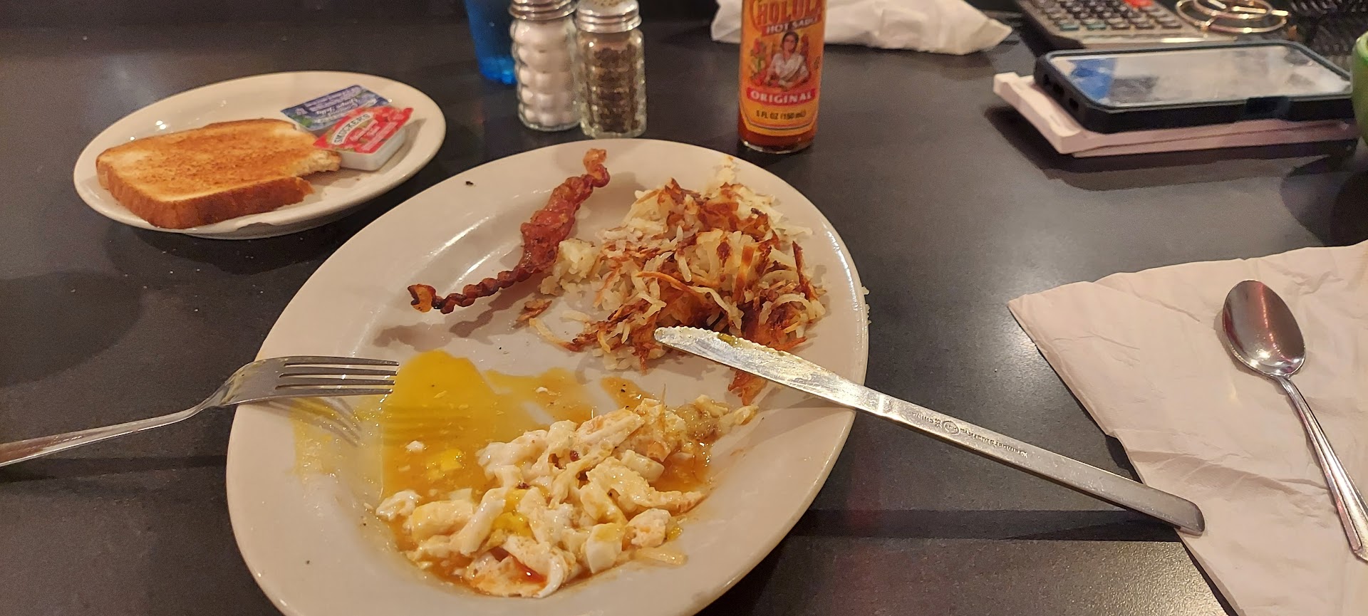 Read moreWent here for the first time and was completely disappointed. I usually go to small places like these because they usually have some of the best service, home style breakfast, very kind waiters that love the people they serve, but this one didnt offer that at all. Service was not kind at all, it seemed as if they did not know that they are located in a busy area and that they would be busy, which im sure its like this every Saturday morning. The food was decent but tasted horrible due to the awfull service. To top things off i walked to the register to pay for our meals, and like i stated in the beginning that it was my first time here, just to find out that i needed to pay attention to the very small 3 in. by 8 in. faded out sign on the door, that most people would ignore, stating that they only took cash. So i had to leave my family there to find an atm. I would not recommend this place and will not be going back. My child said something that i found quite funny as we drove away, she said "Man even Denny's is better than this" sooo true. I think the only reason they get busy is because there seems to be no other...