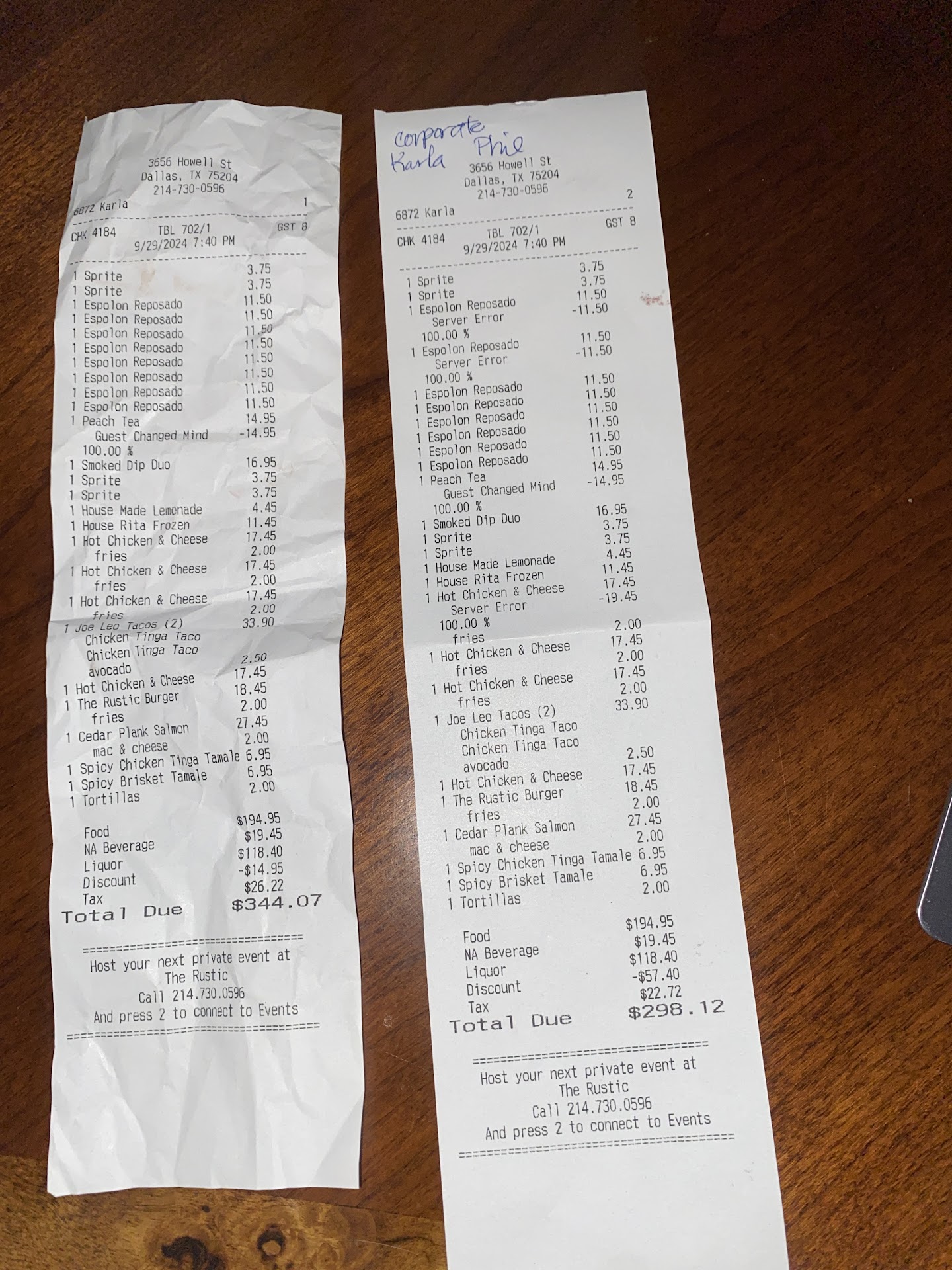 I am writing to express my profound disappointment with the service my family and I received during our visit to The Rustic in Dallas on September 20, 2024. Unfortunately, our experience with Karla, our server, left us feeling disrespected, unwelcome, and ultimately unsafe due to a series of unsettling interactions.