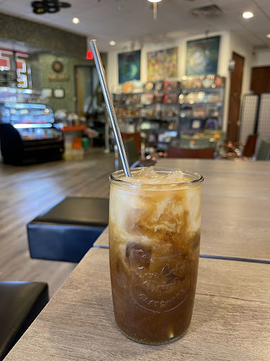 I was driving by, saw the coffee shop, and thought Iād stop in. It looks unassuming from the outside. The atmosphere inside is really cool. Definitely different from your standard coffee shop. Lots of records hanging on the walls and they have another room dedicated to vinylās too.