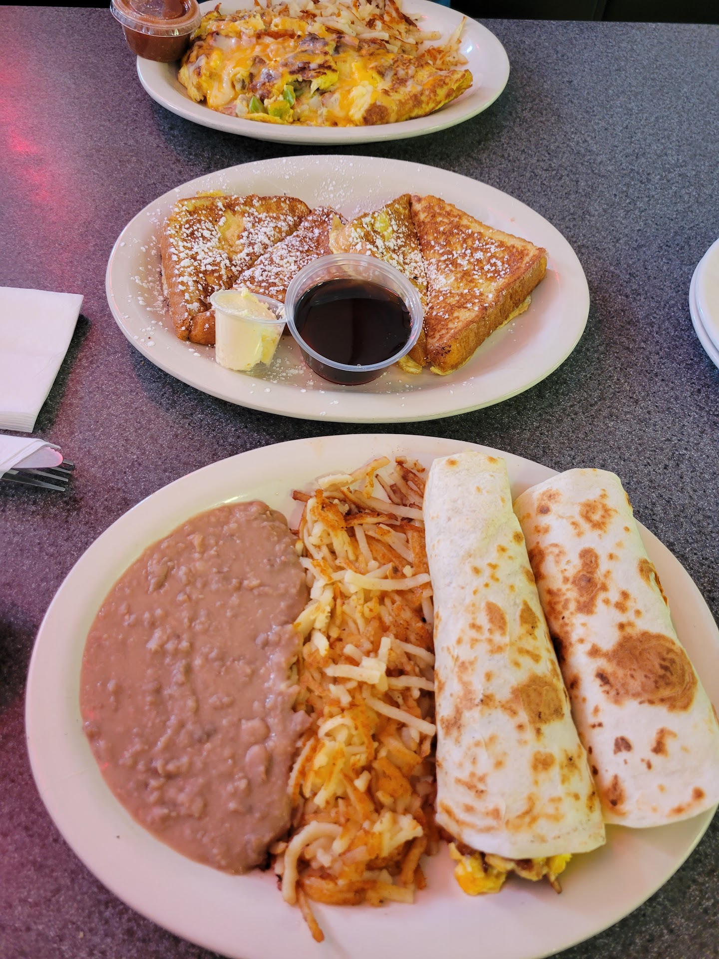 I've had their meatloaf a long time ago and it was good I had it today it was the worst stuff I've ever came across I couldn't eat the stuff he had a yellow change to it either apparently they made a very bad batch this time I guess I'll wait another two or three years before I tried again I ordered the BLT with extra lettuce they were very little lettuce on it hardly none and it was dry as could be hardly any mayonnaise also asked for a very small amount of fries I got more than I've ever seen they still need to improve a lot Wasn't good this time ordered the chicken fried steak to go when I had the chicken fried steak in there it was a real you know like chop steak it's been breaded there you could tell this hair look like it was the prefab Patty that was already bred in they just cooked it and it was didn't taste good. This time and they didn't give me any plastic wear also usually they're good but this time they were not. They were a lot better before the pandemic and they were getting better but had a bad day this time apparently but they went back to them around hamburger patties that were pre- breaded looks like when before they had the actual cube steaks or something big ready themselves they still do sometimes I guess whenever they run out of them they...