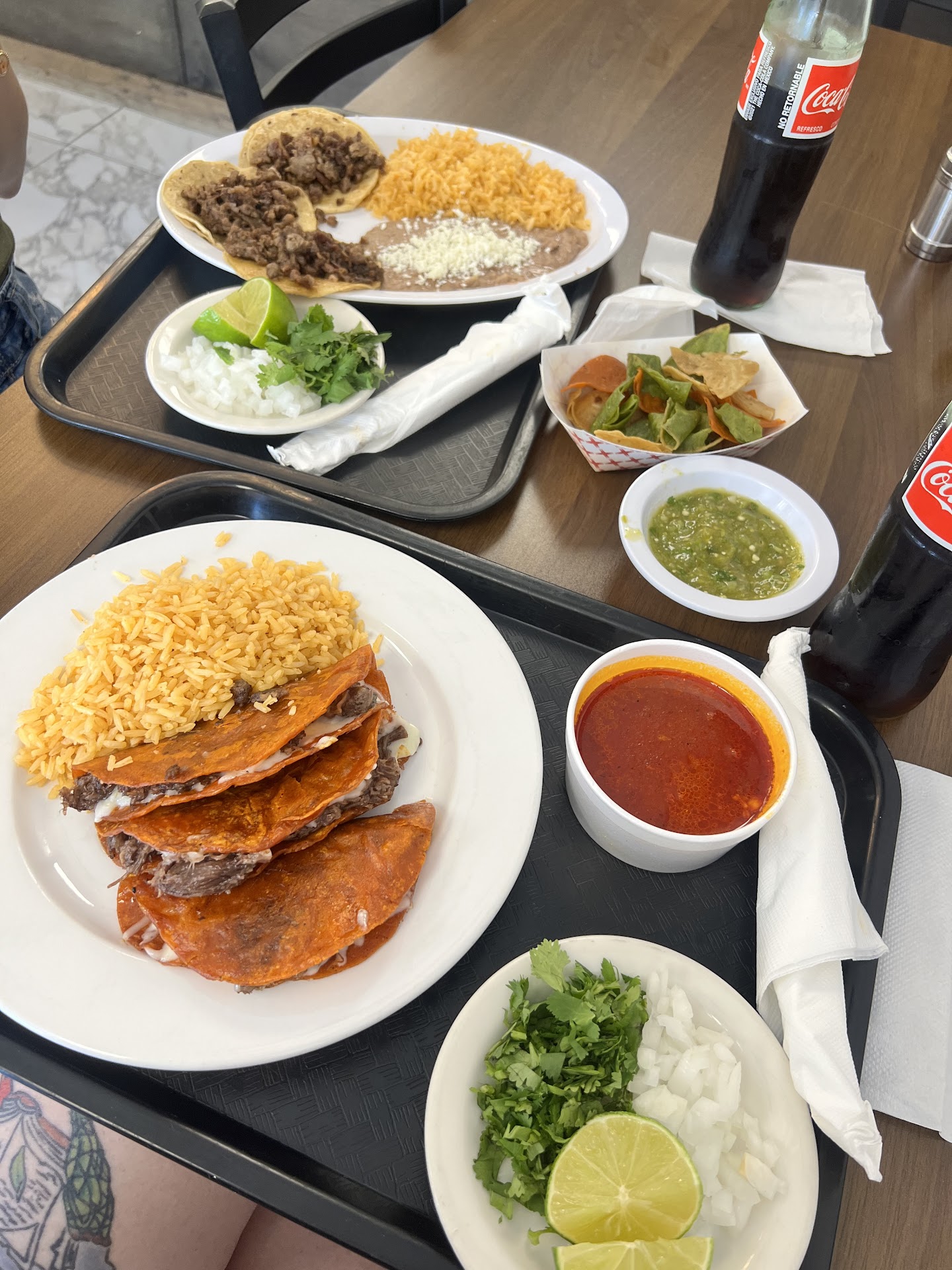 This place is GREAT! We’re in Dallas on vacation and picked a taco spot at random after visiting the local mall and we couldn’t be happier. I ordered the quesobirria and my friend ordered the beef taco plate each with a Mexican Coke. We chose to eat there and the women behind the counter were very kind and helpful. They brought us complimentary chips and salsa, sauces for our food, and turned on music videos. If I lived here I’d eat here all of the time! The food was fresh and delicious, service was prompt and considerate. One note to consider is that the menu is all Spanish- so it’s good to have an idea of what you’re...