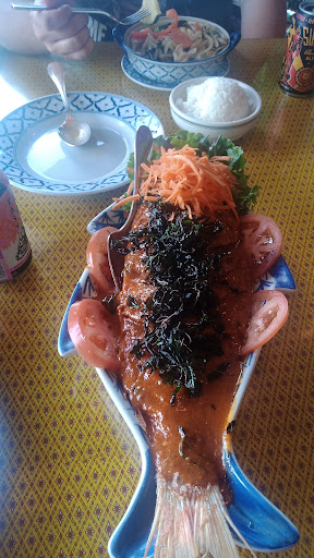 We got the chicken satay, Thai ice coffee and spicy fried rice. The chicken satay had a yellow curry on it that did not taste good at all. We couldn’t eat it. The Thai iced coffee had a bad taste as though the condense milk was old. The spicy chicken fried rice was not at all spicy but at least was edible.